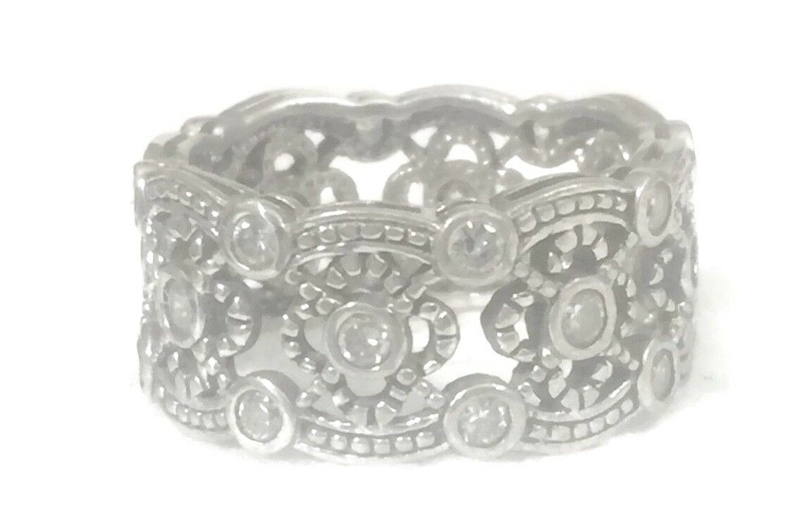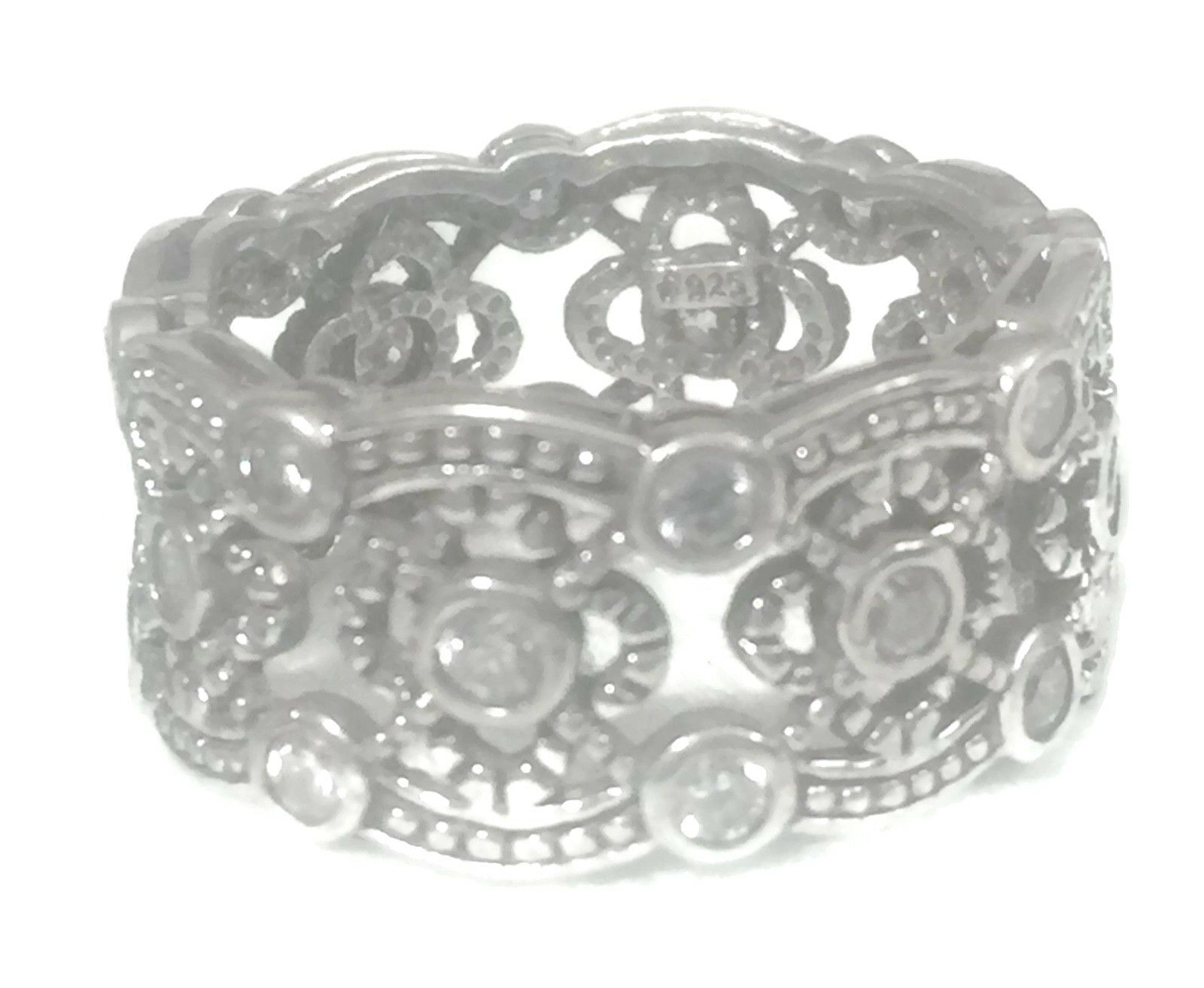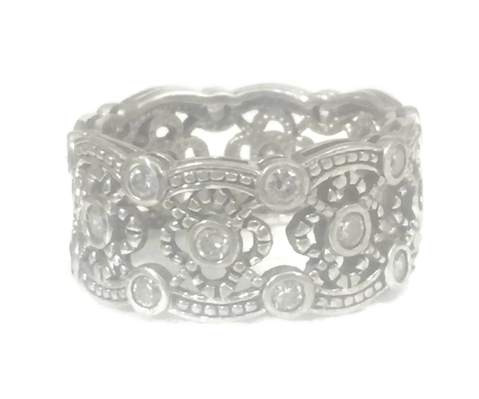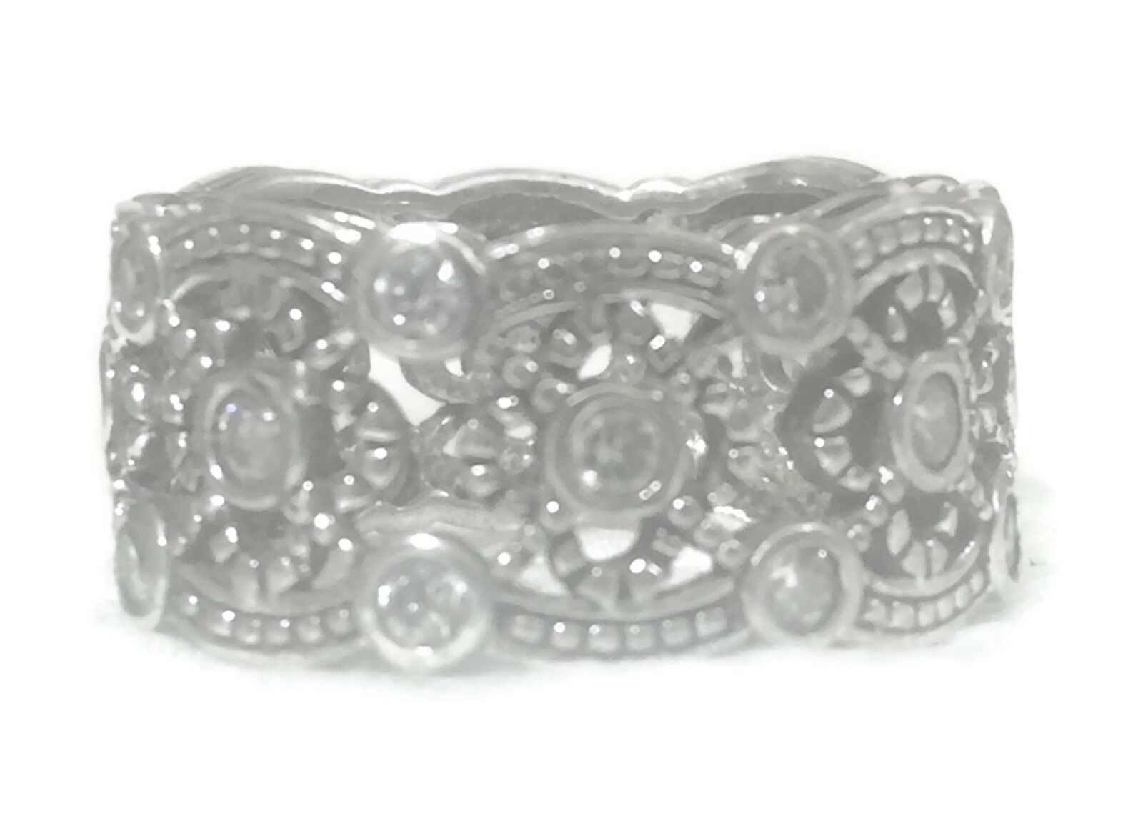 Vintage CZ Ring Sterling Silver Boho Thumb Wide Band Size 6.50