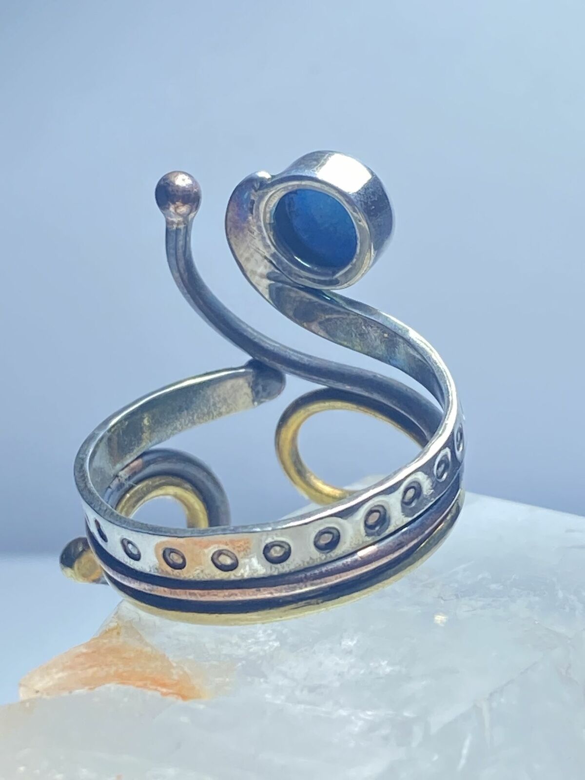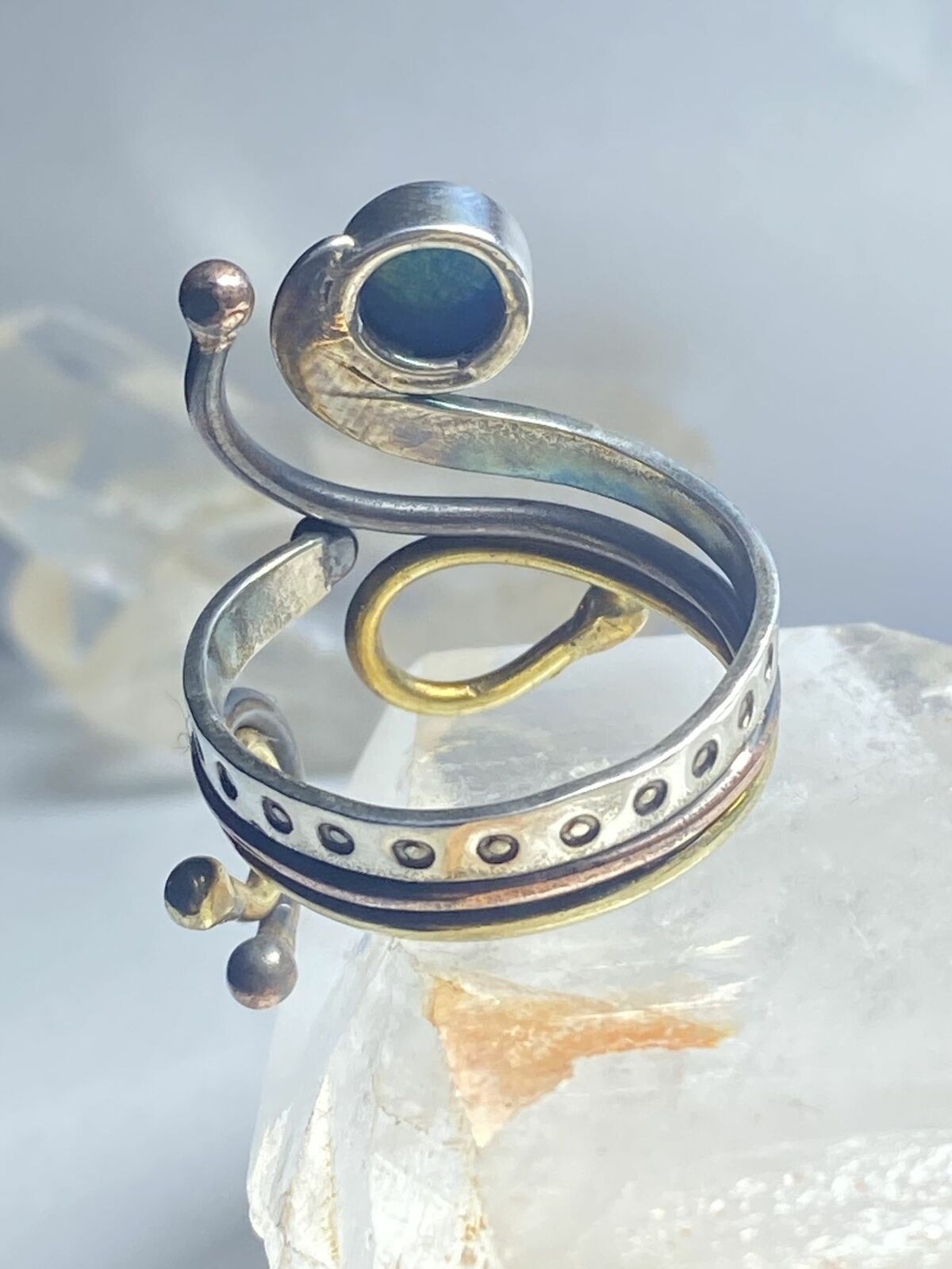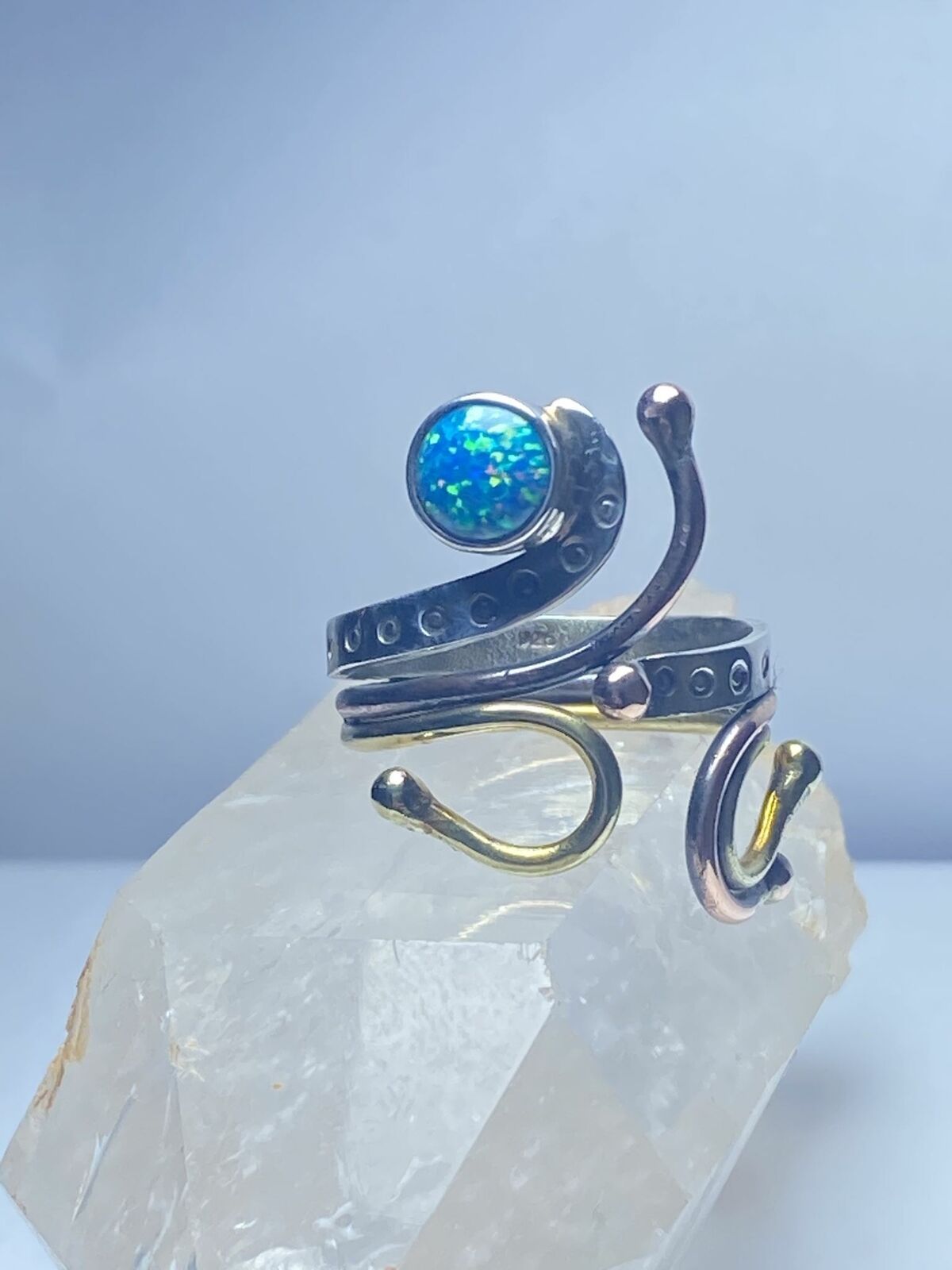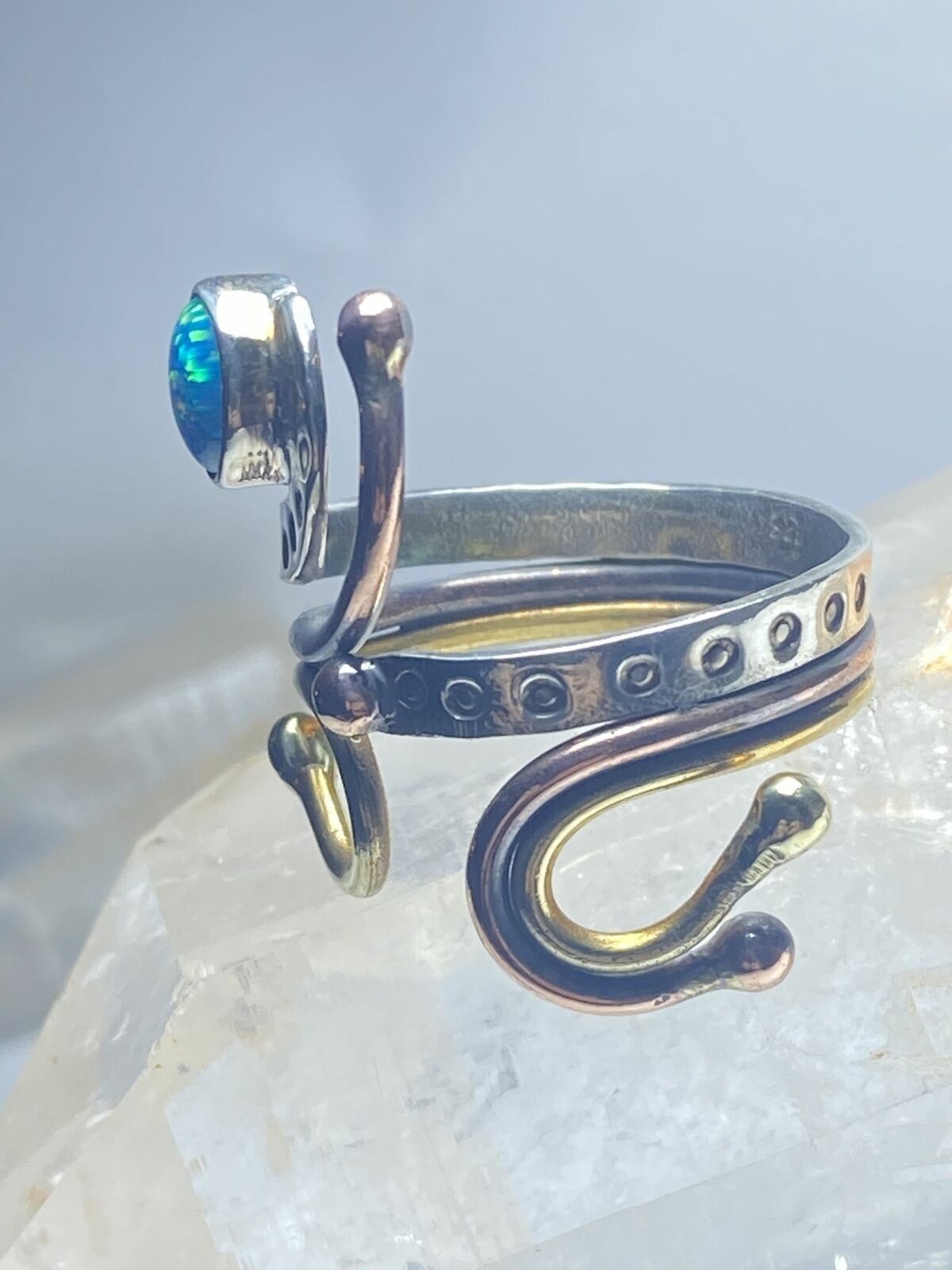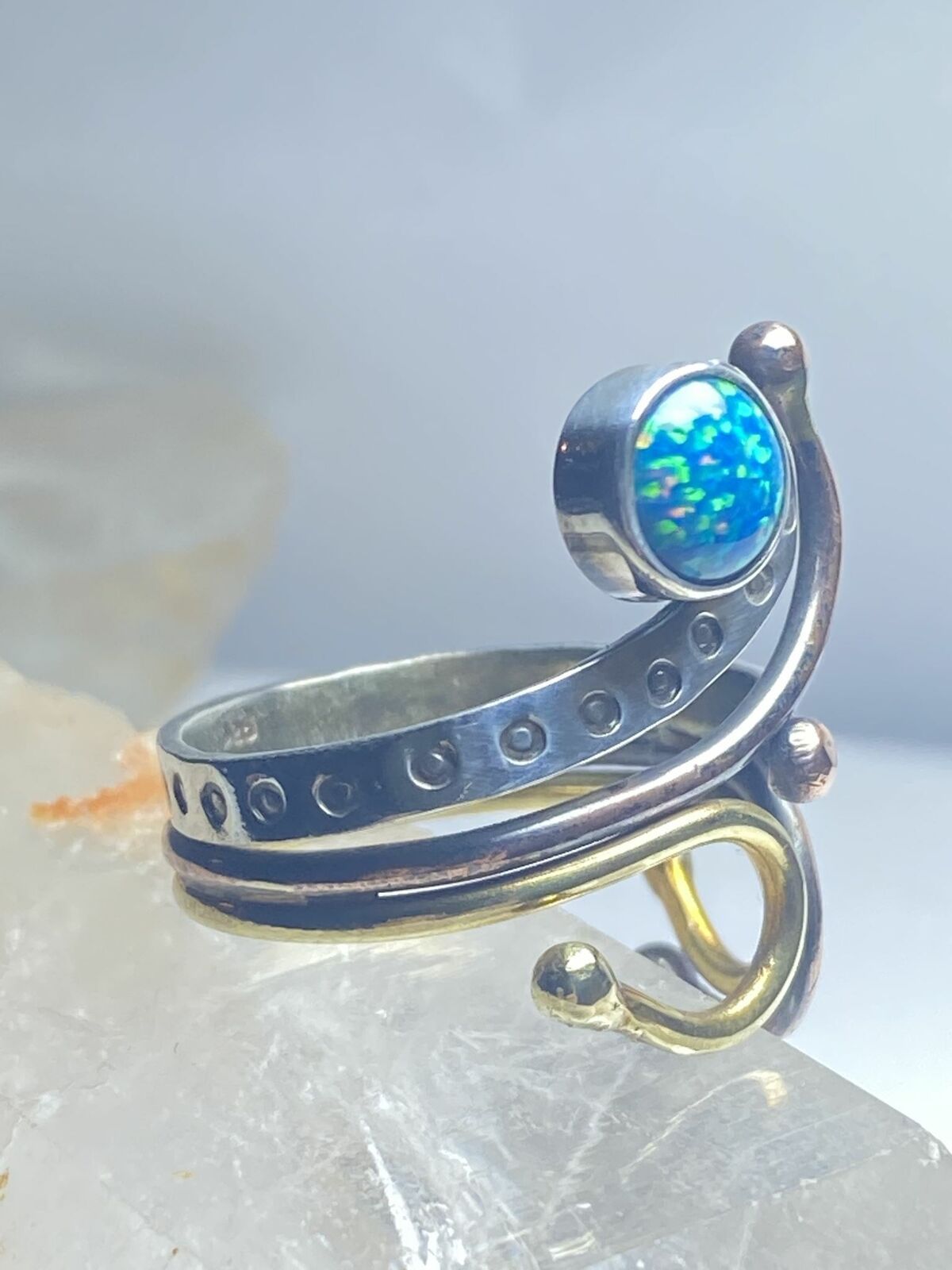 Opal lab ring abstract floral boho handmade southwest sterling silver size 9