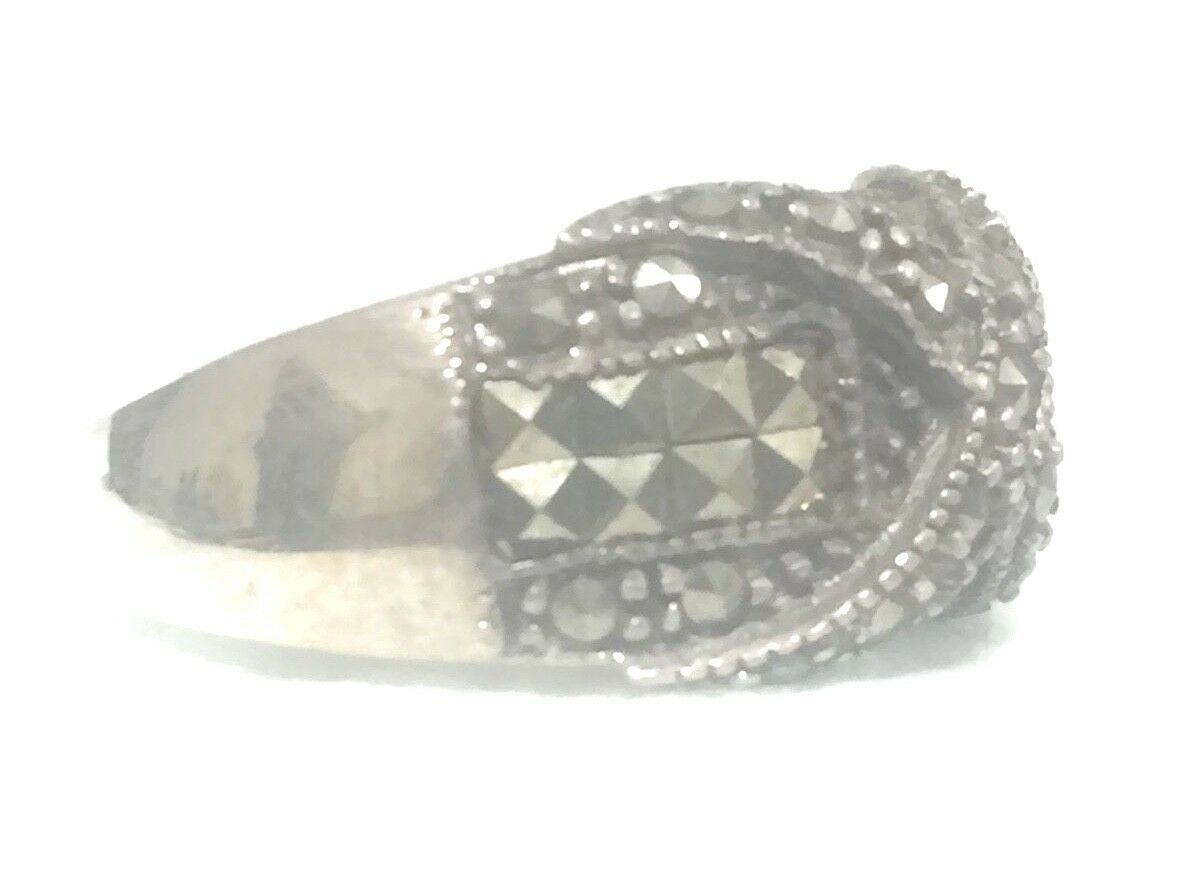 Vintage Marcasite Band Criss Cross Ring Sterling Silver Boho Thumb Band Size 7.7