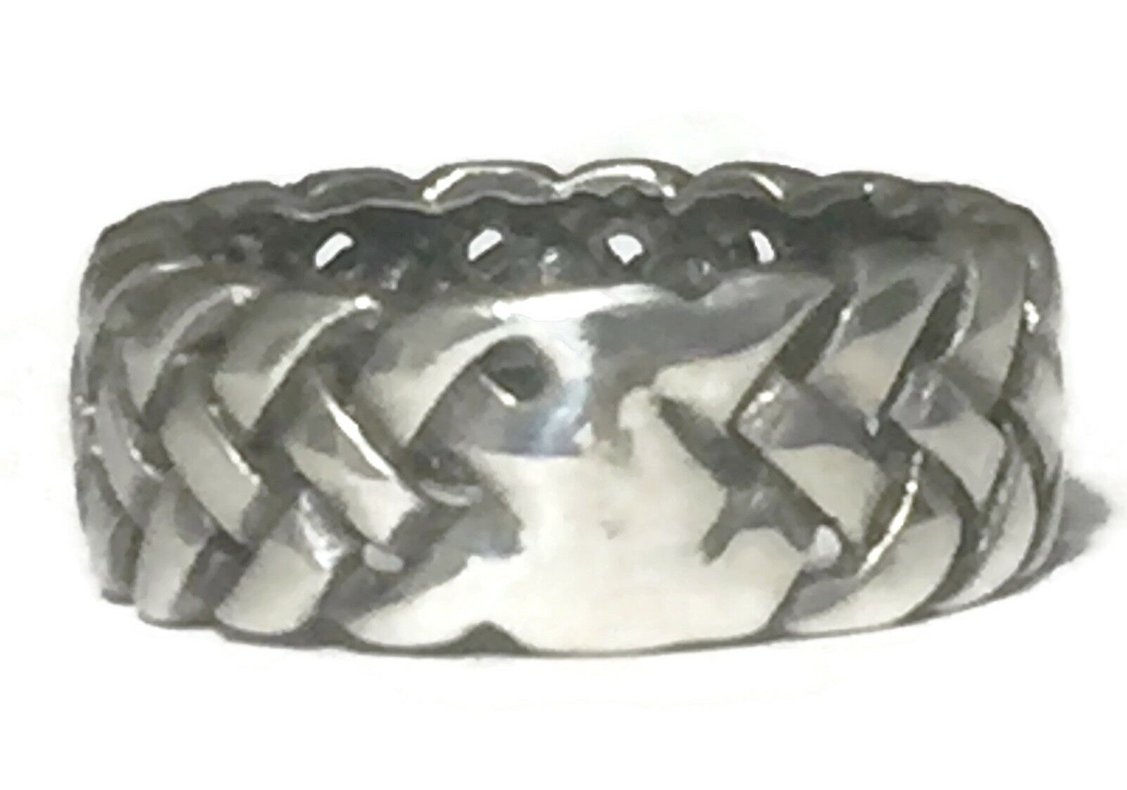 Vintage Rope Woven Band Sterling Silver Southwest Thumb Ring BoHo Size 6.50