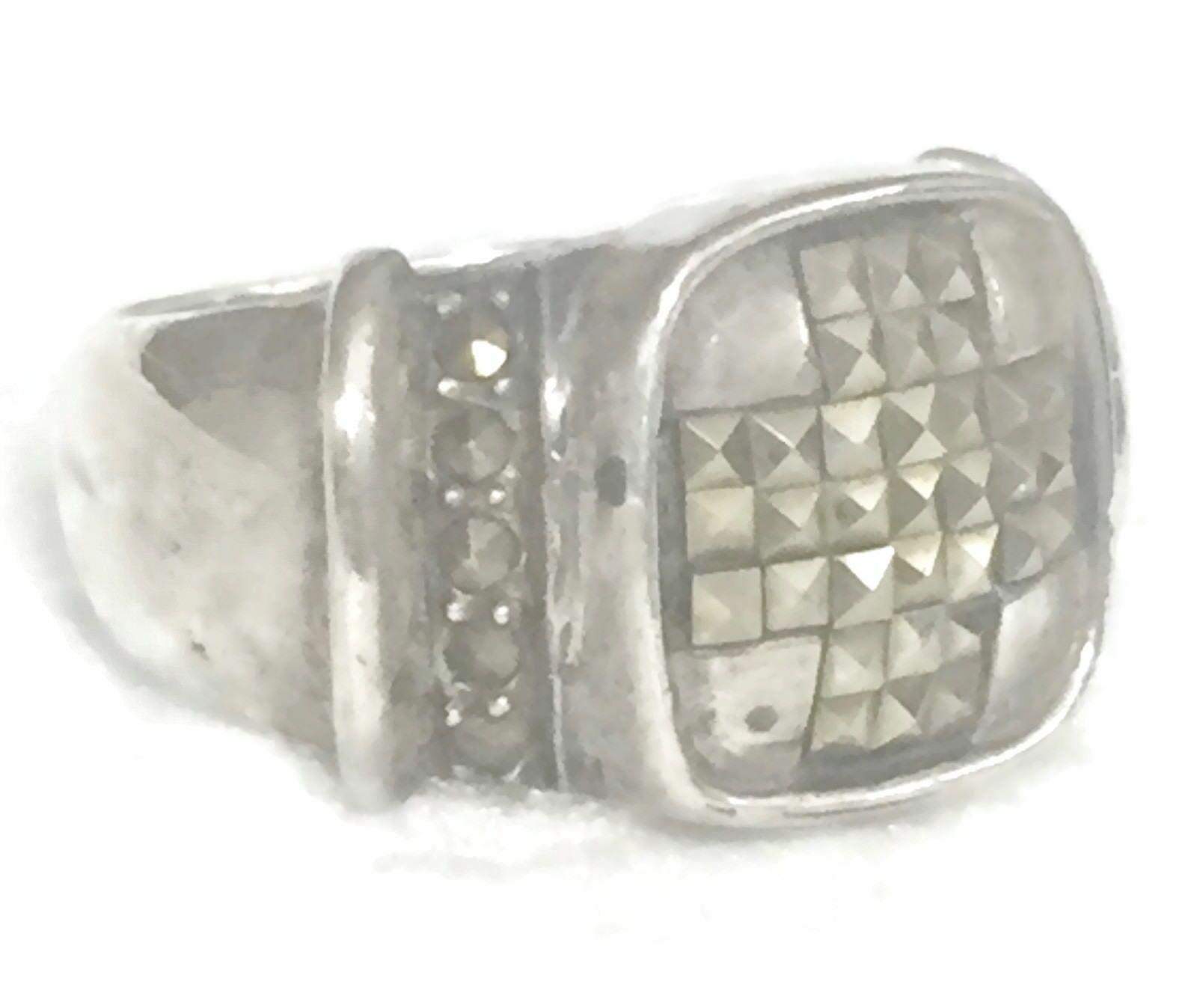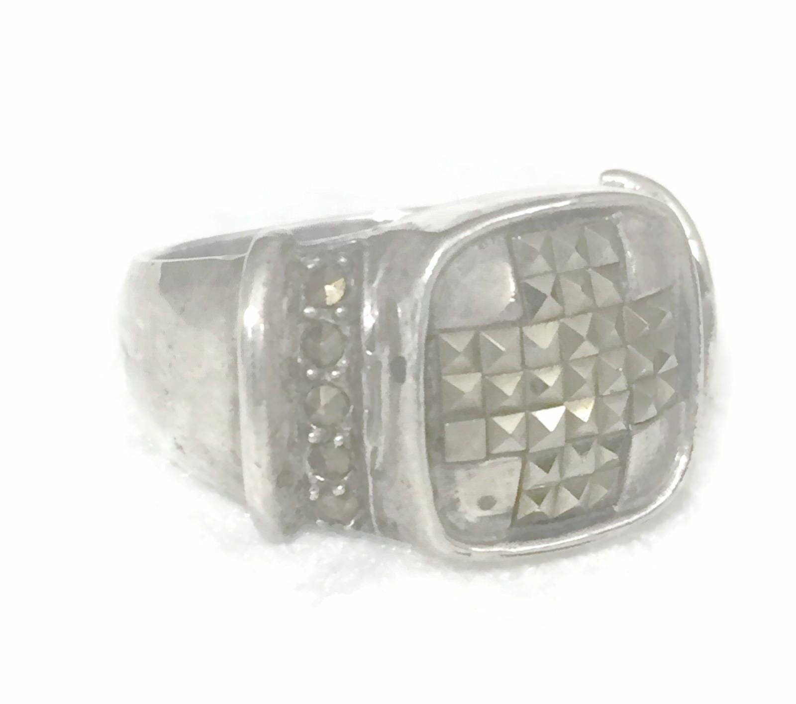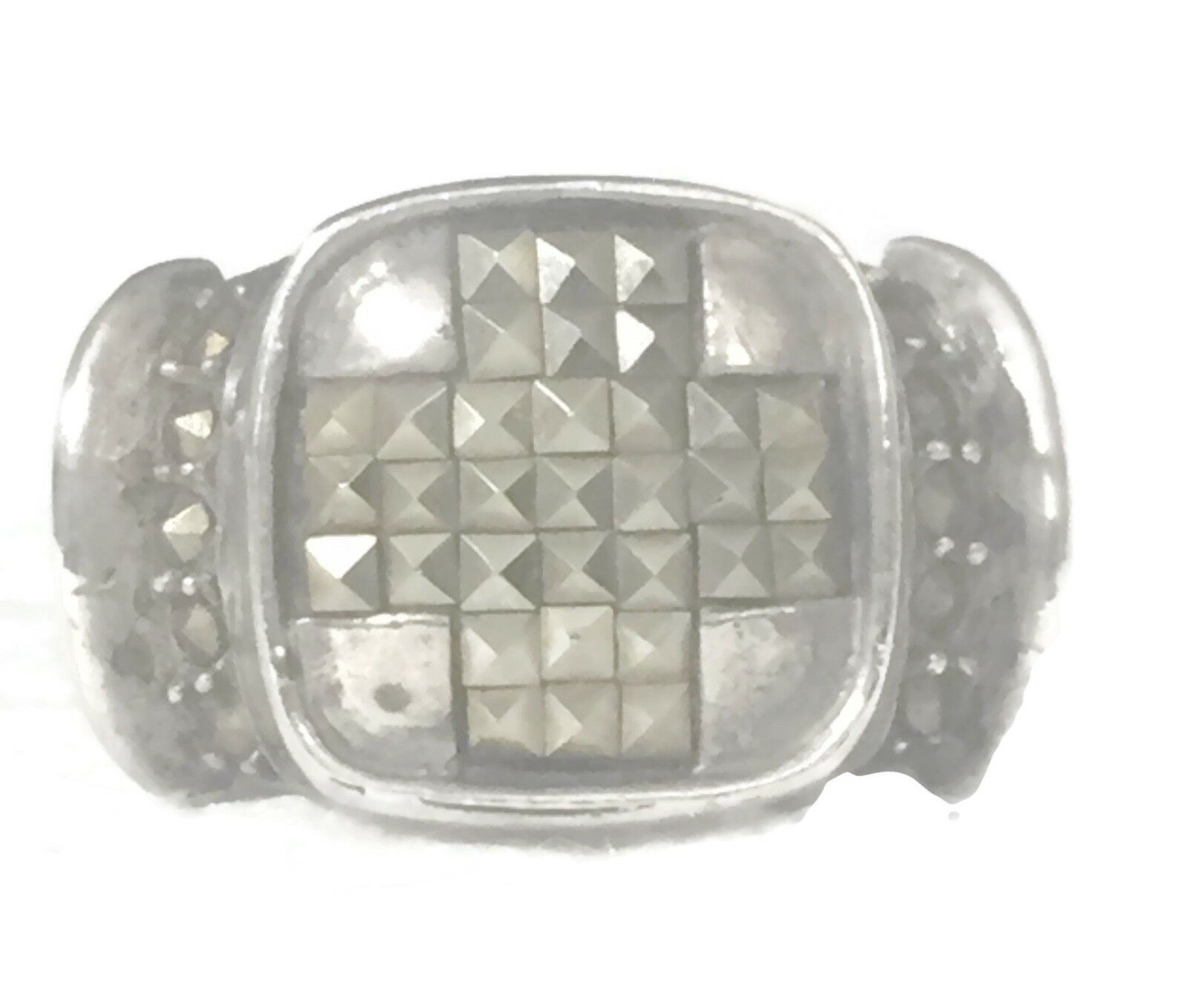 Vintage Greek Cross Marcasite Band Sterling Silver Ring