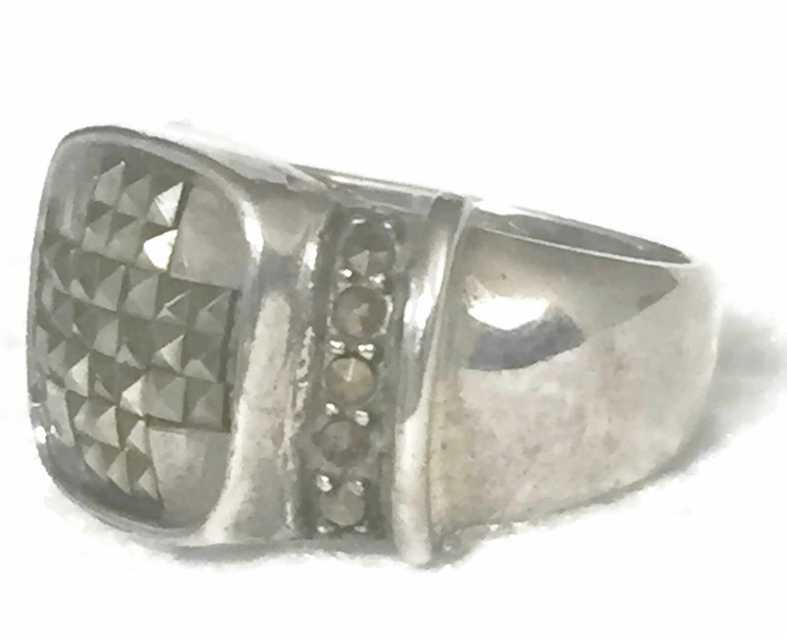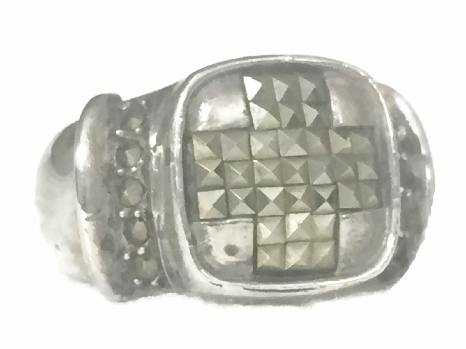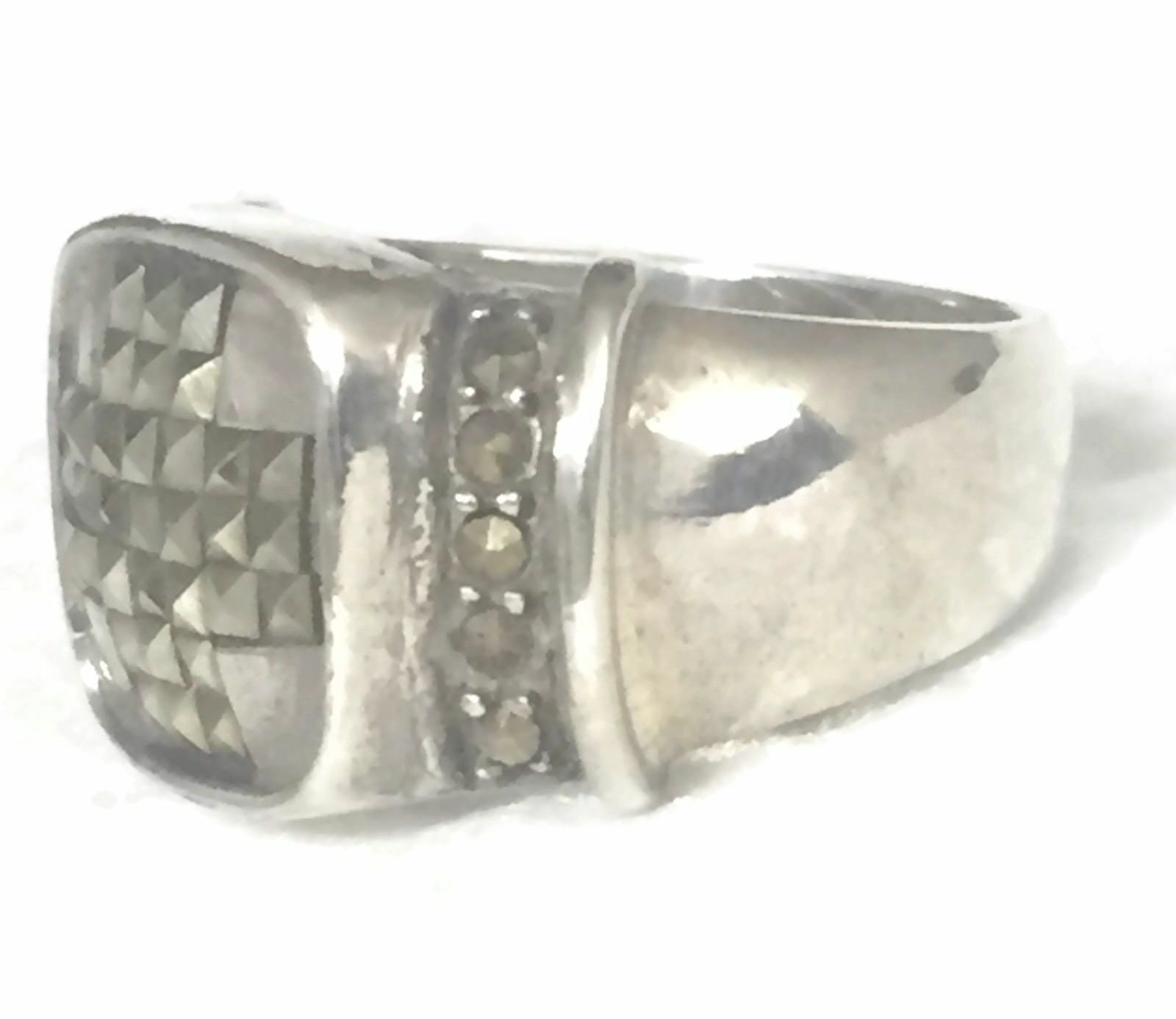 Vintage Greek Cross Marcasite Band Sterling Silver Ring