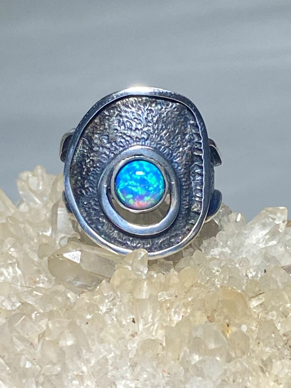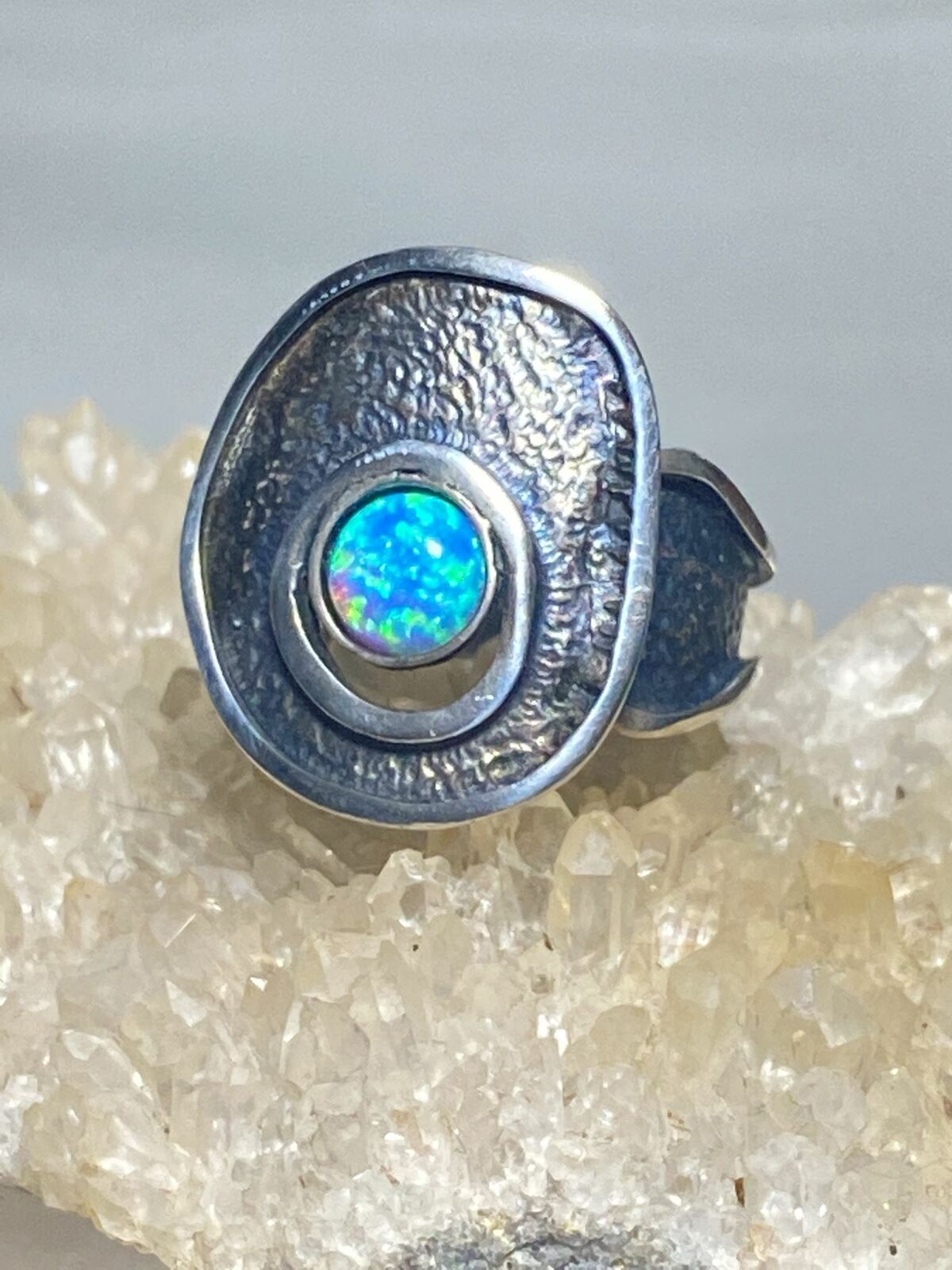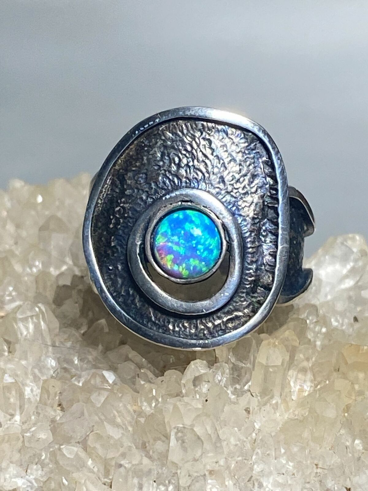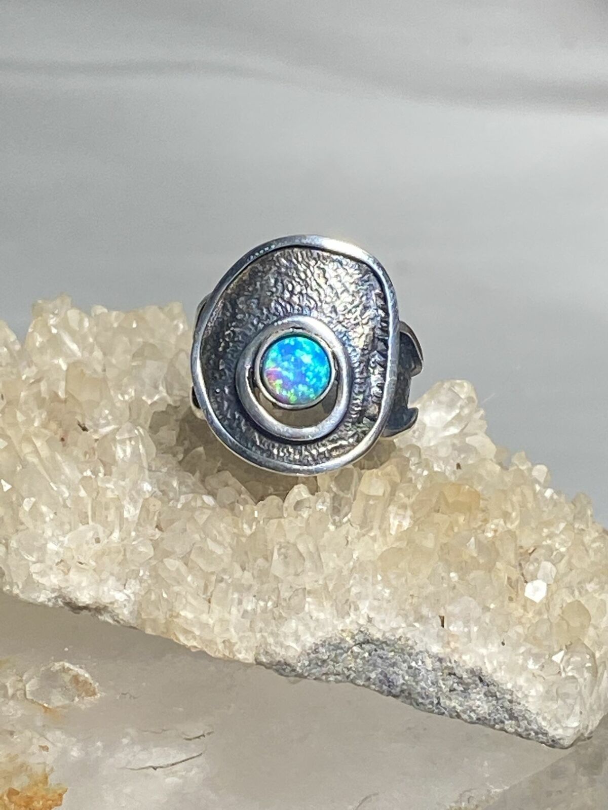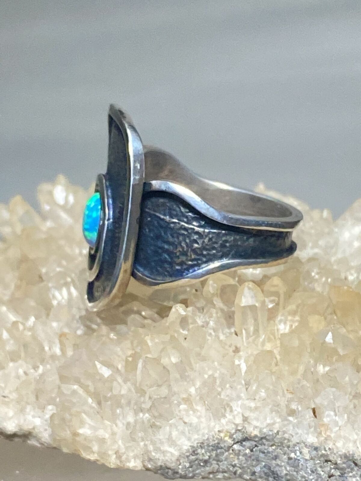 Opal ring floral abstract band sterling silver women girls size 7.25
