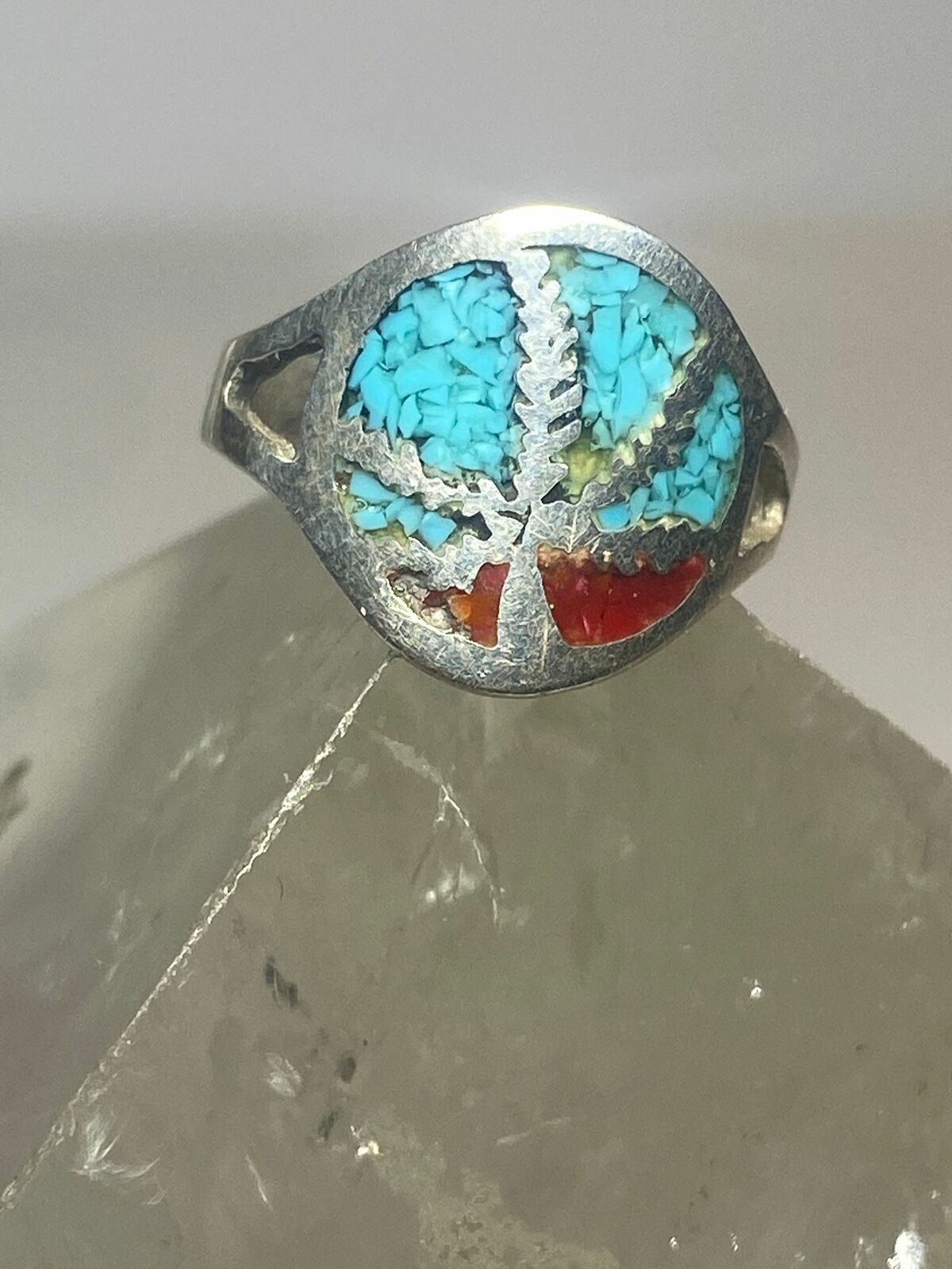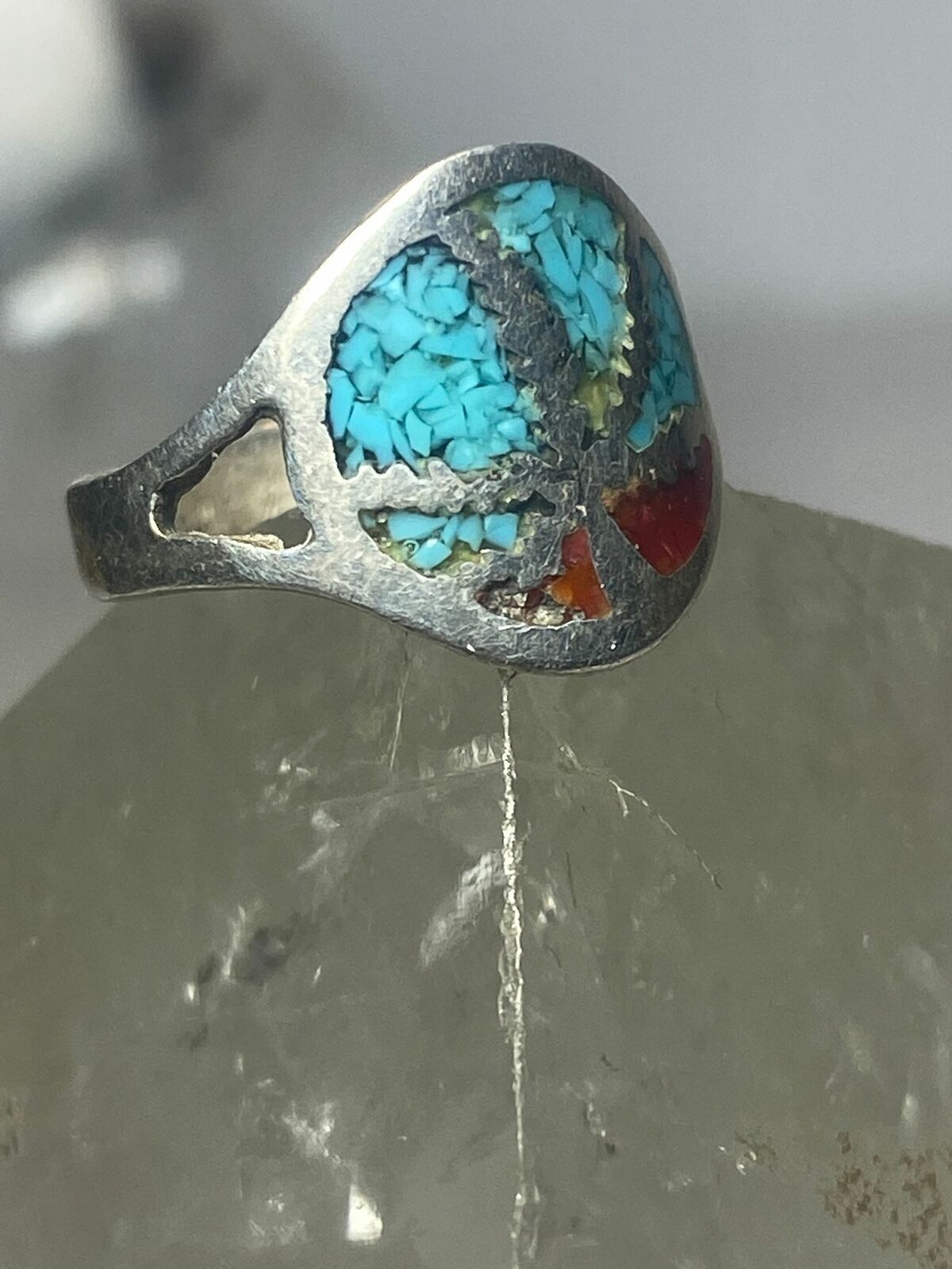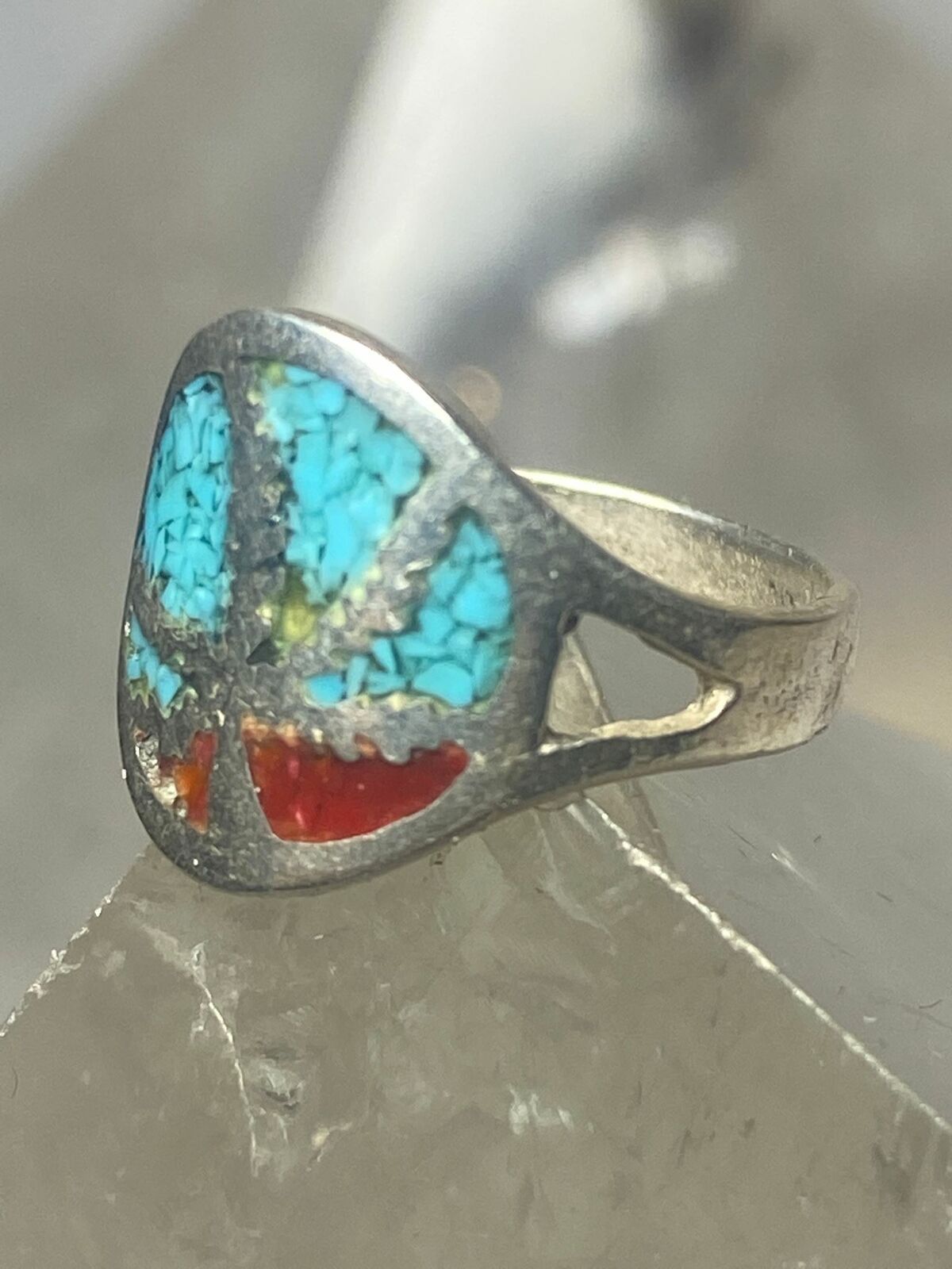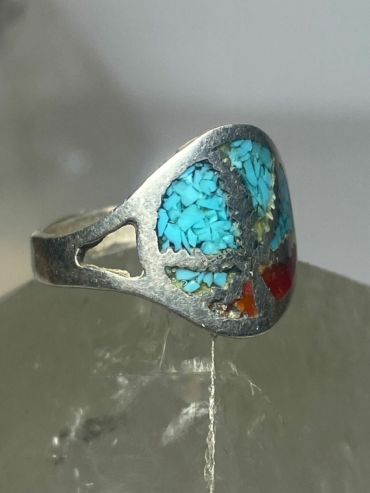 Marijuana ring pot band turquoise coral chips southwest pinky sterling silver w