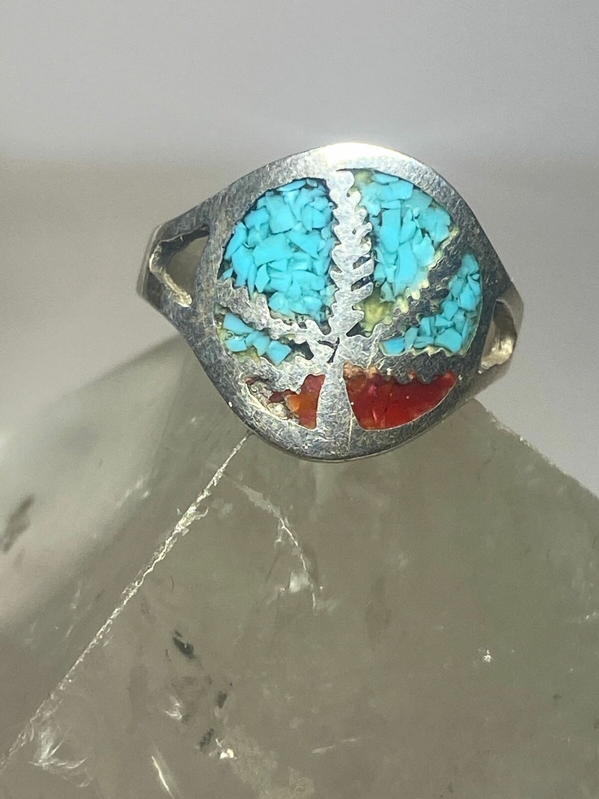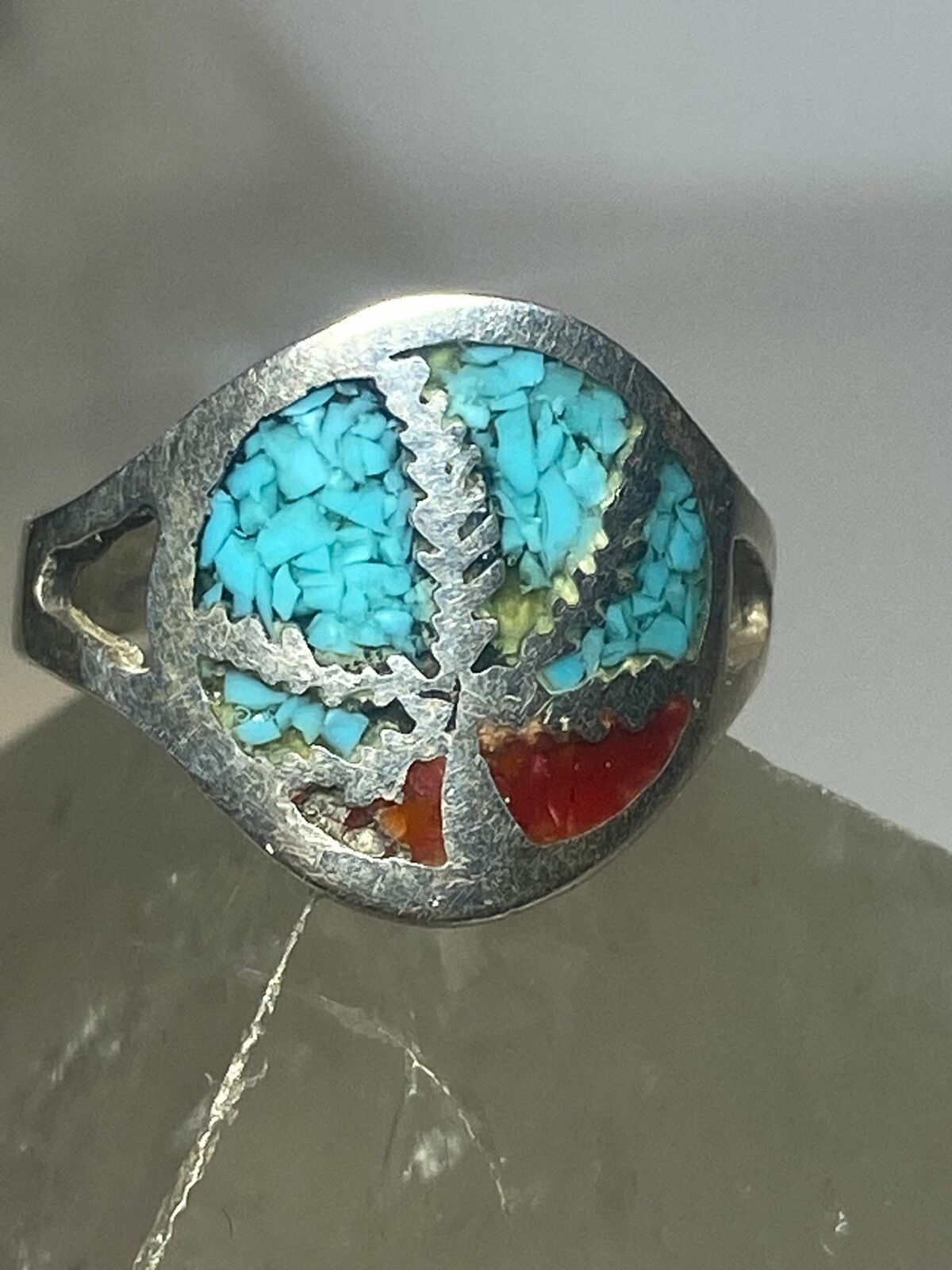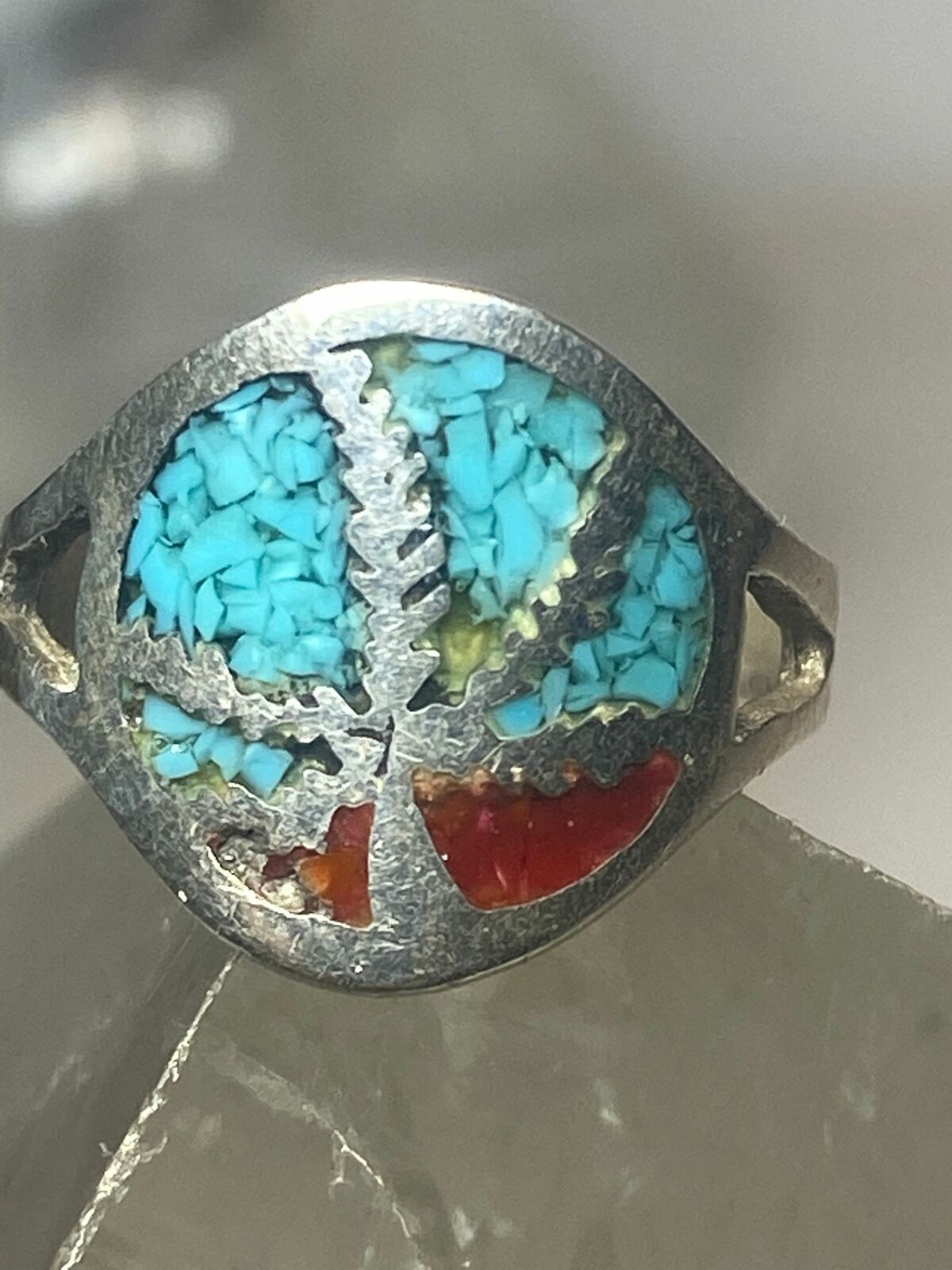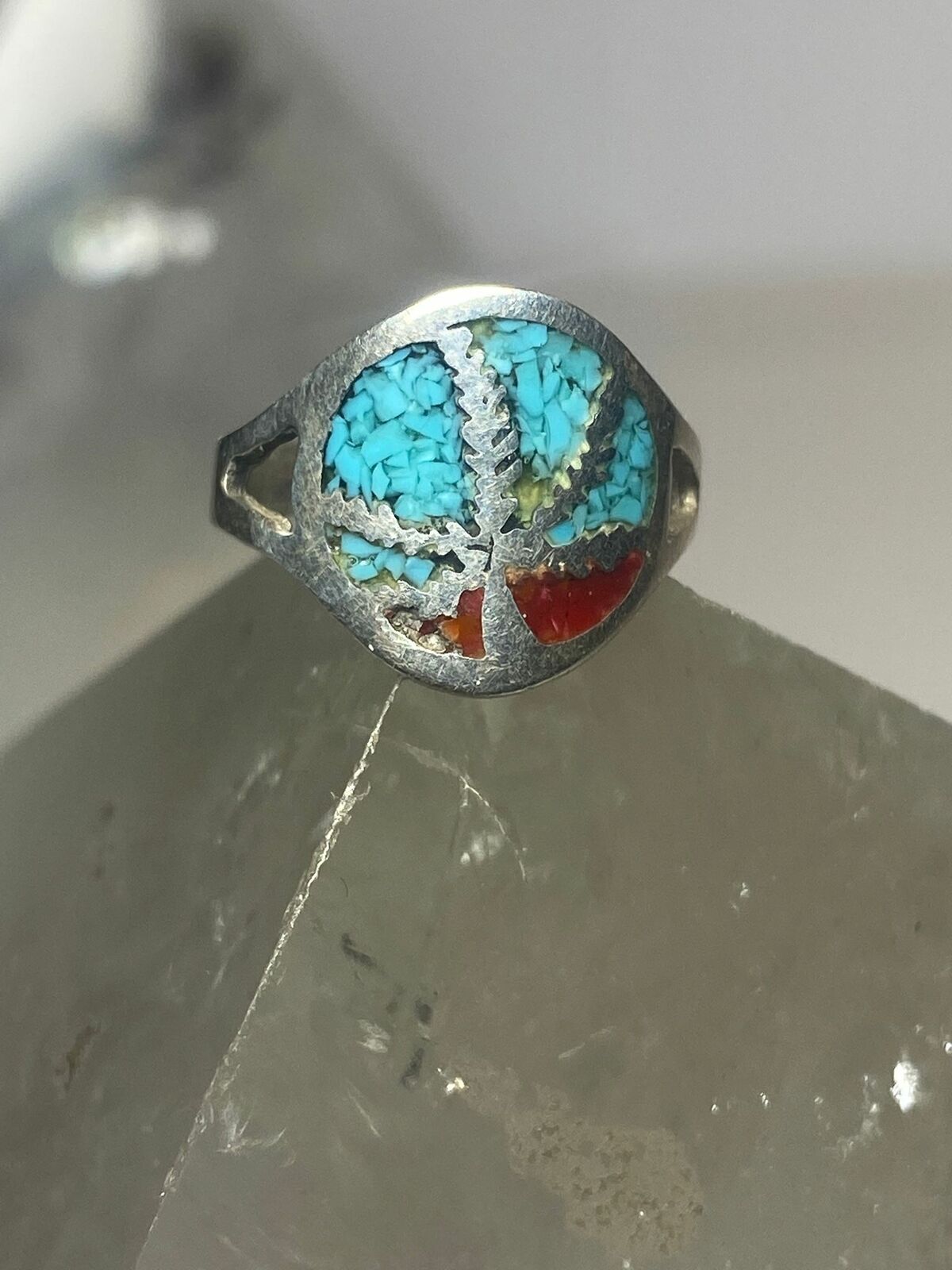 Marijuana ring pot band turquoise coral chips southwest pinky sterling silver w