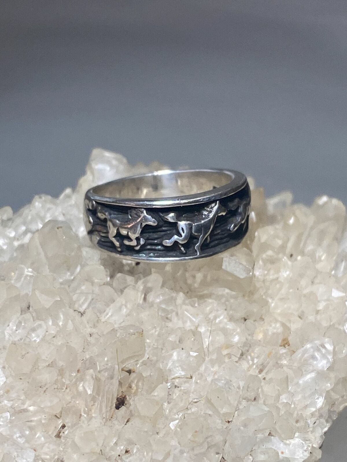Horse ring horses cowgirl band pinky sterling silver southwest women size 5.75