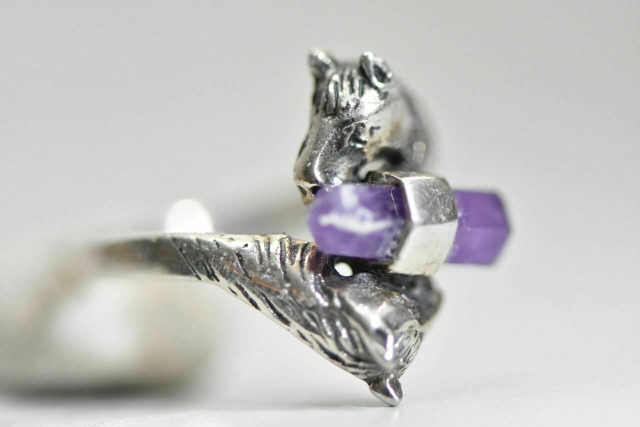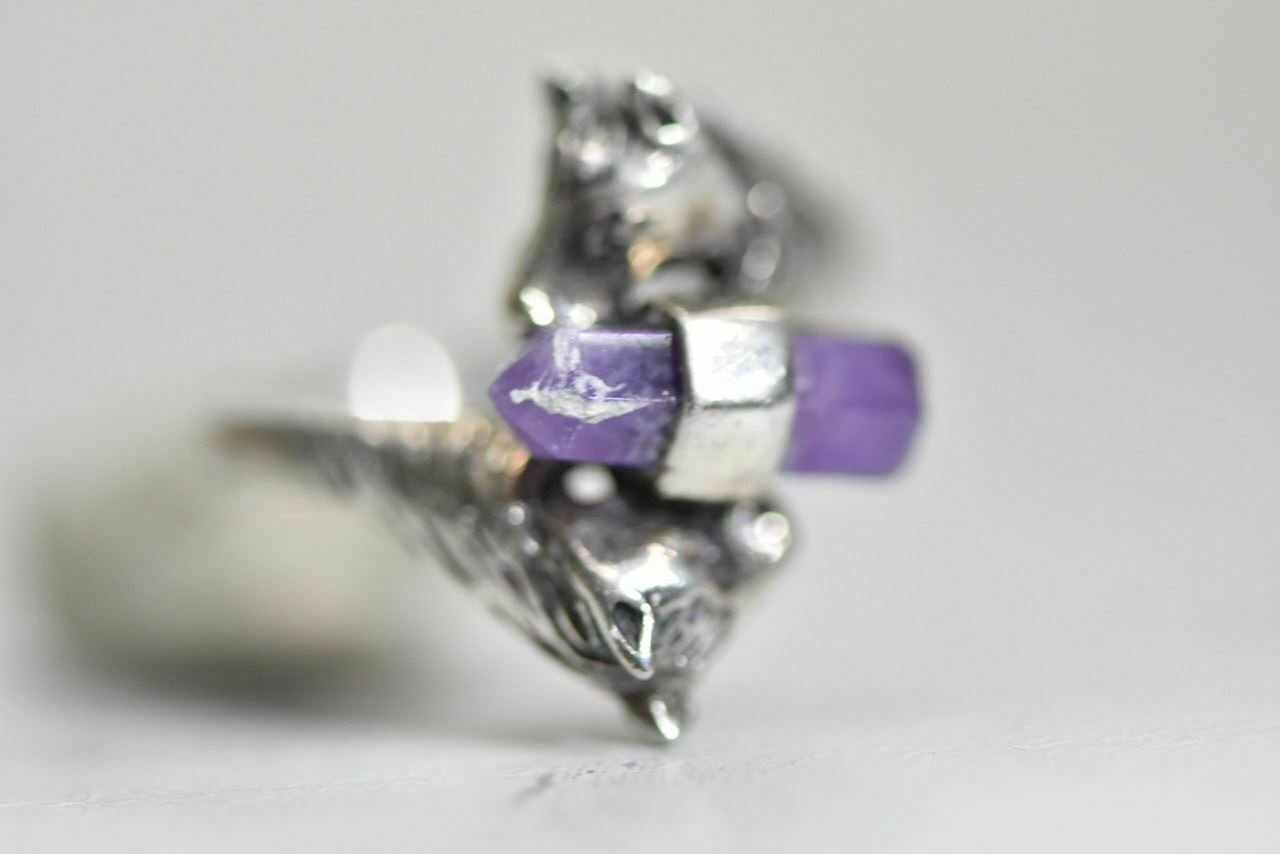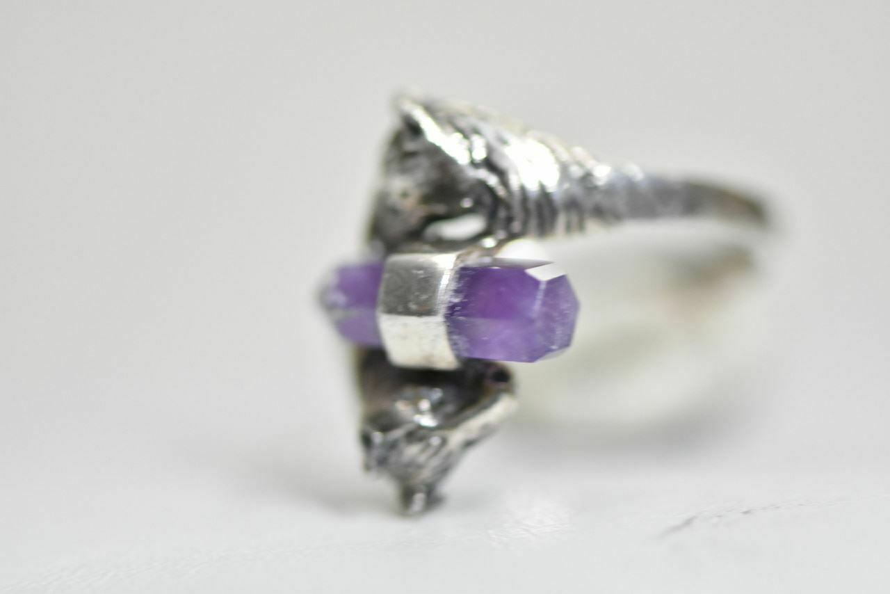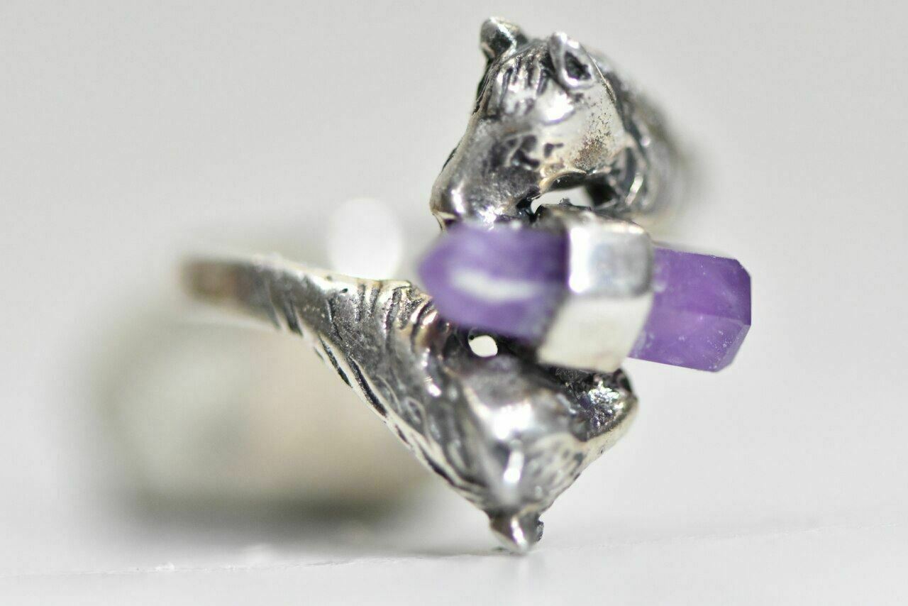 Horse ring purple crystal cowgirl sterling silver women Size 8.25
