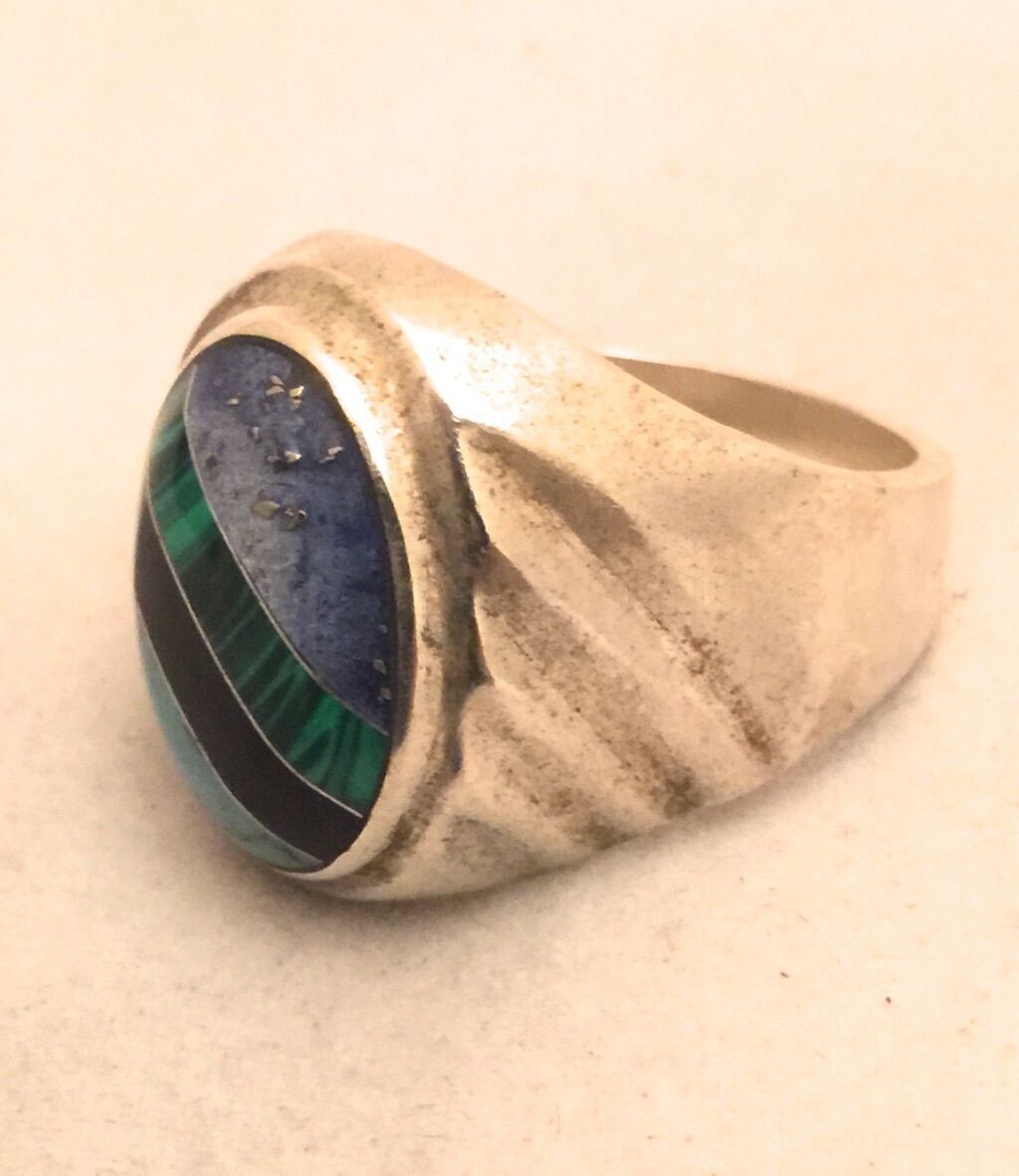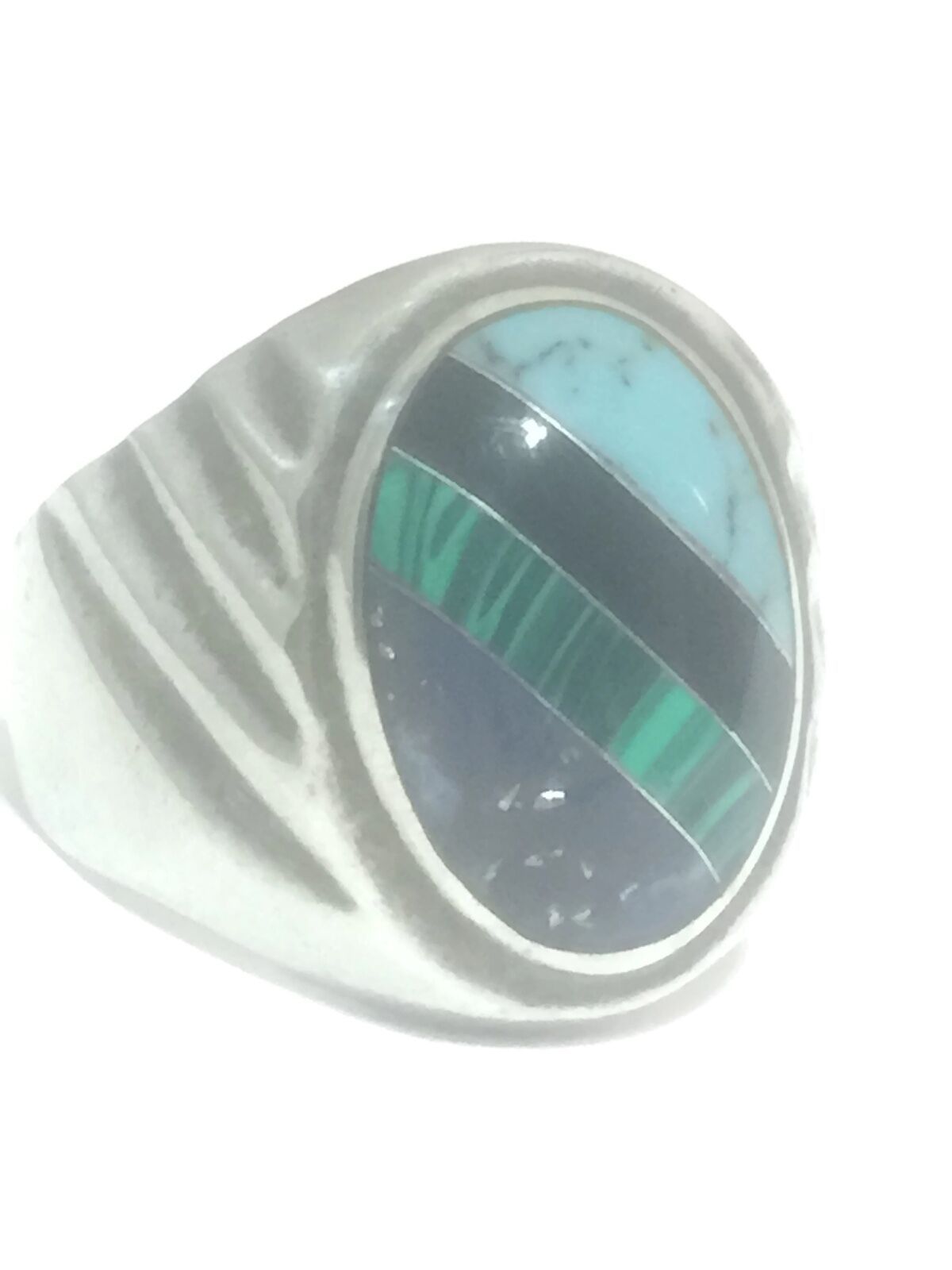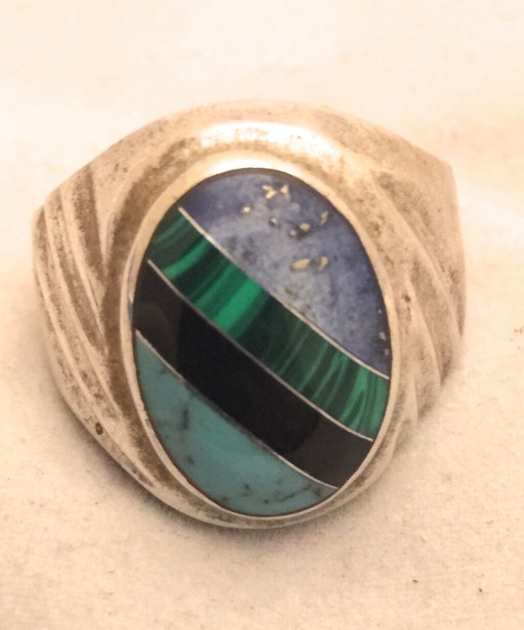 Vintage Sterling Silver Turquoise Malachite Onyx Ring