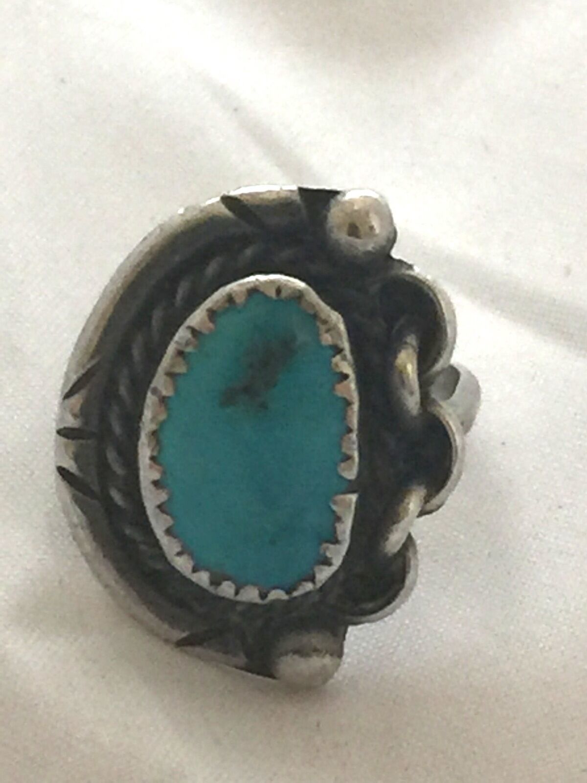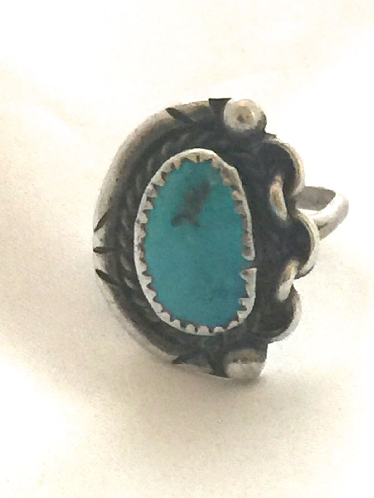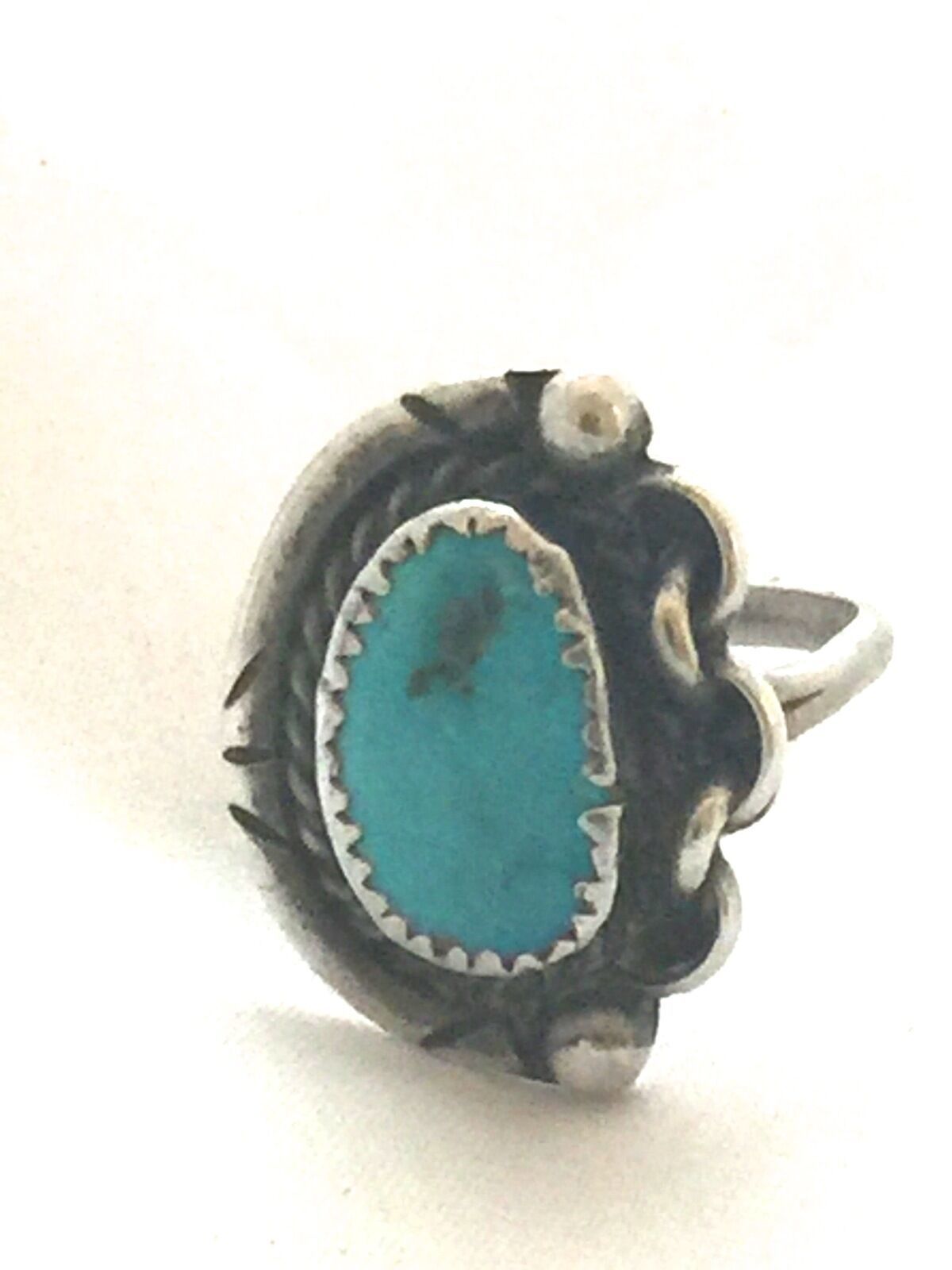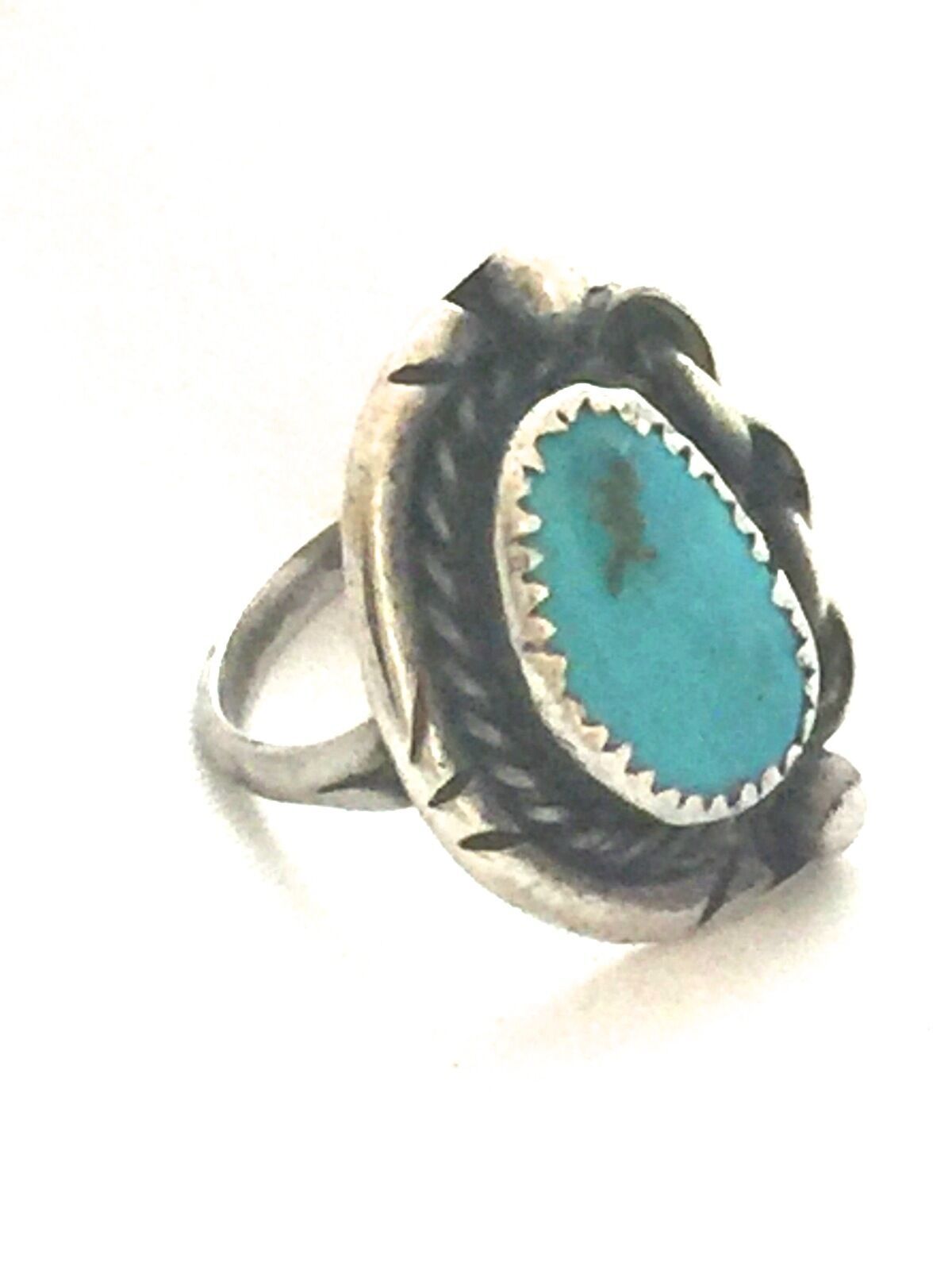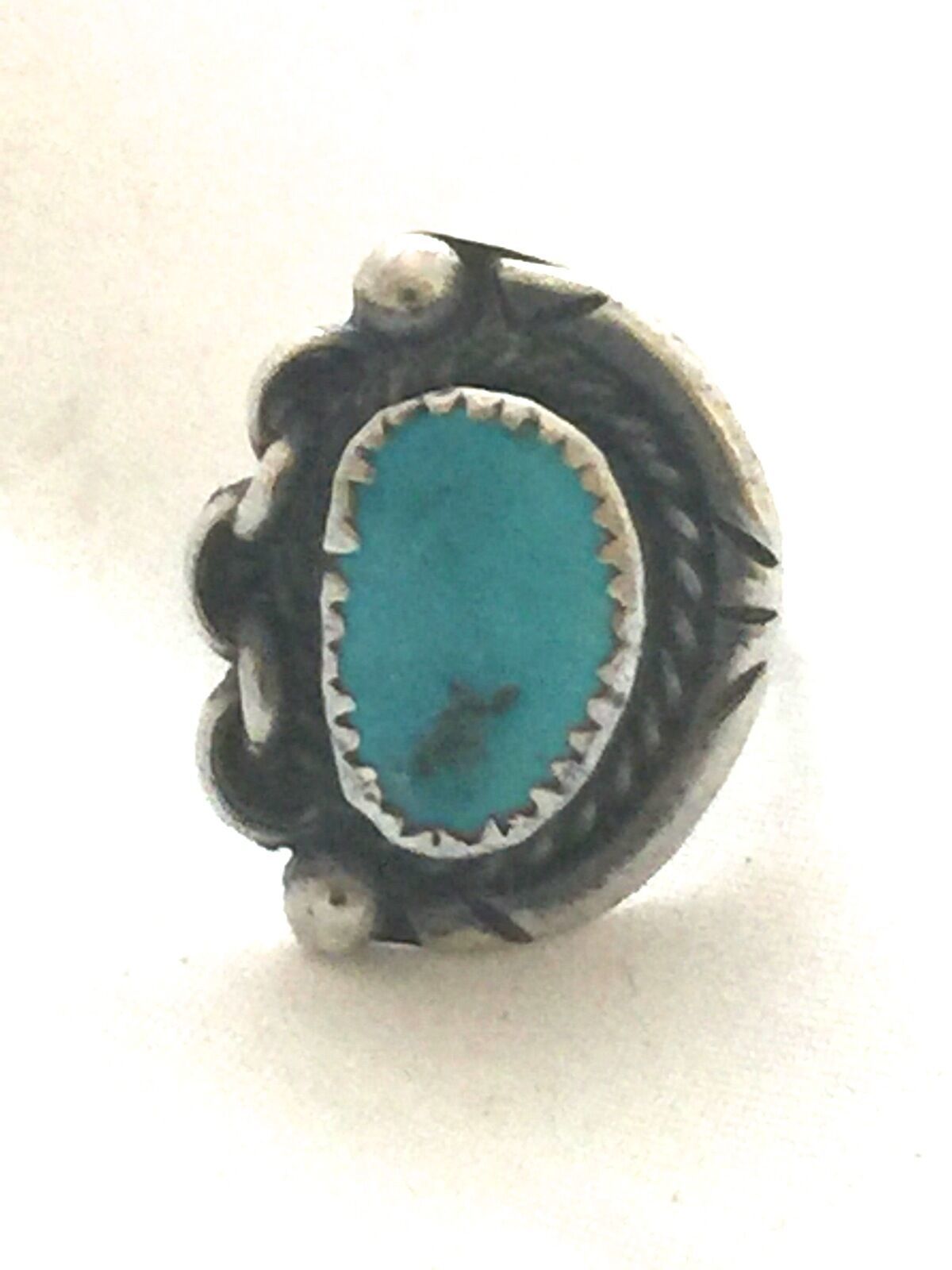 Vintage Sterling Native American Navajo Turquoise Ring Chain Size 6.5 6.4g