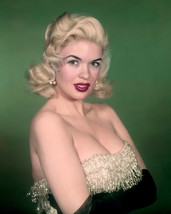 Jayne Mansfield Stunning Busty In Low Cut Gown Green Backdrop 8x10 Photo