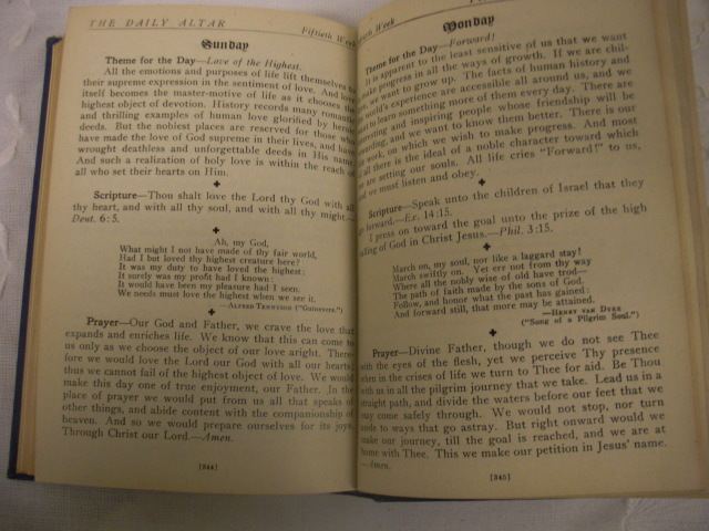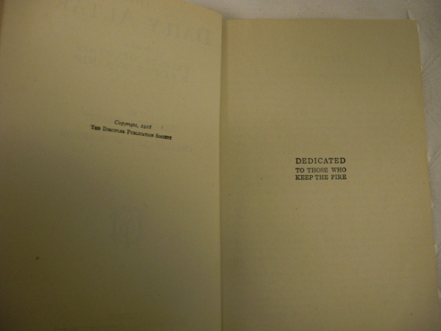 The Daily Altar, an aid to Private Devotion 7 Family Worship: written by Herbert l. Willett and Charles Clayton Morrison, C. 1918, P. 1924 by The Christian Century Press, Chicago.
