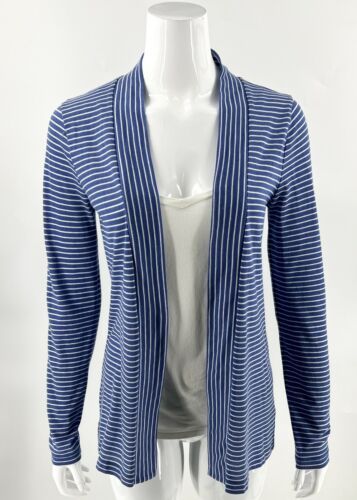 J Crew Cardigan Top Size S Blue White Striped Open Front Cotton Blend Womens