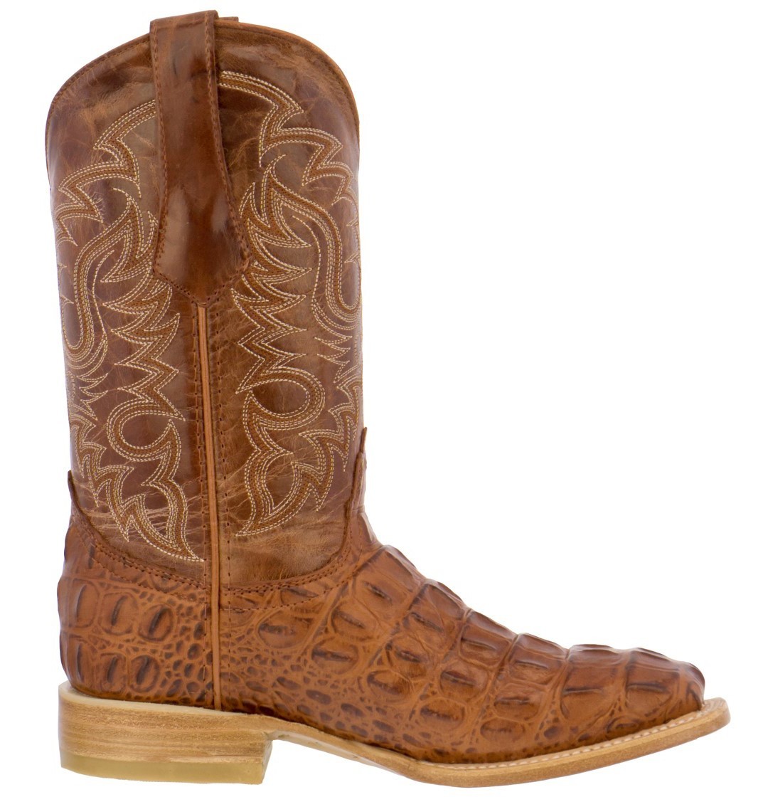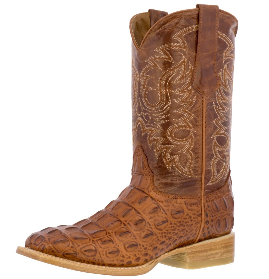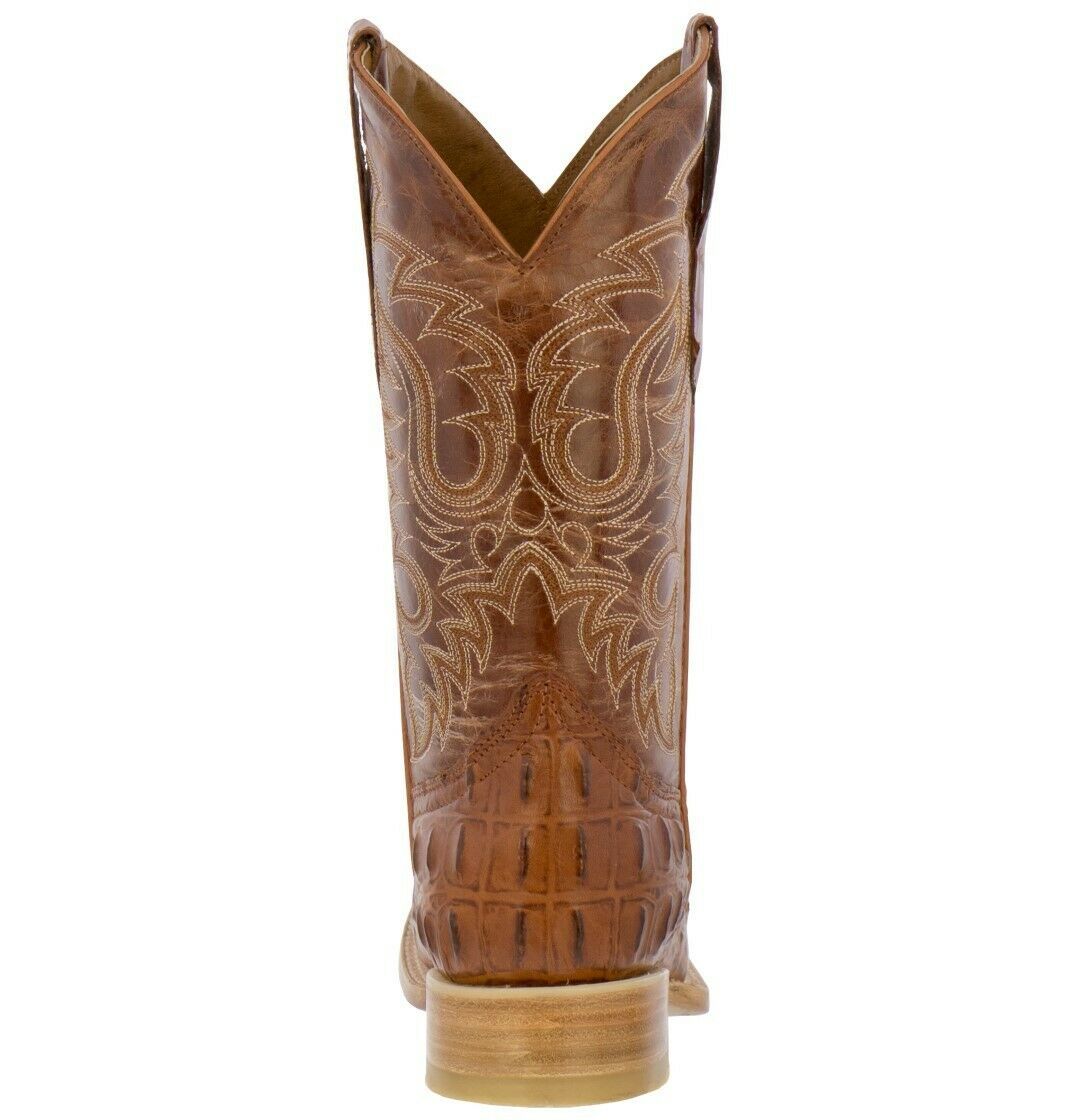 Mens Cognac Western Boots Crocodile Back Pattern Leather Cowboy Wear Square Bota