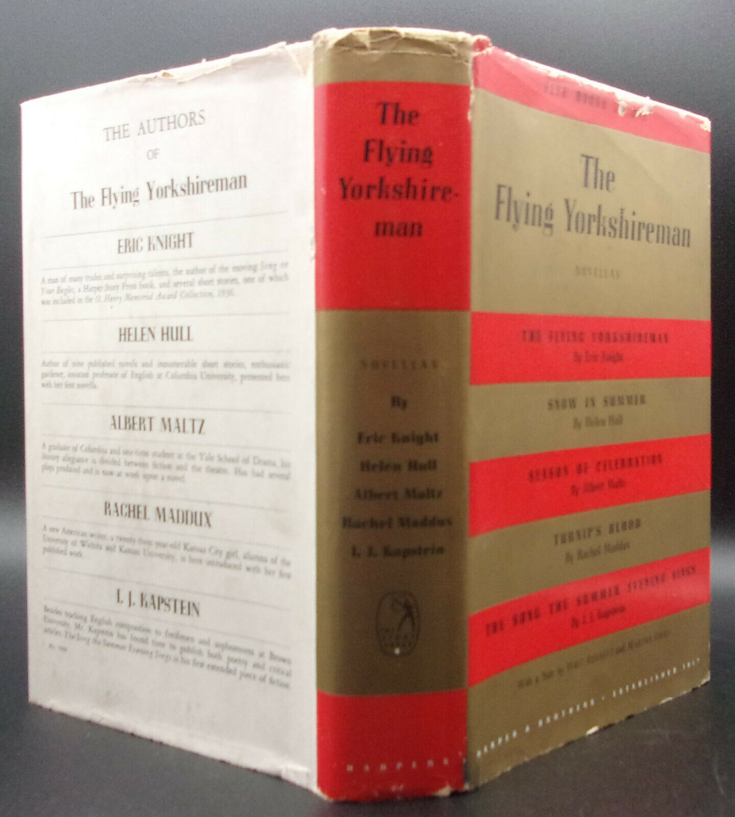 Five short stories and one novellete (Knight) in one volume: "The Flying Yorkshireman" by Eric Knight; "Snow in Summers" by Helen Hull; "Season of Celebration" by Albert Maltz; "Turnip's Blood" by Rachel Maddux; "The Song the Summer Evening Sings" by I. J. Kapstein; with a note by Whit Burnett and Martha Foley.