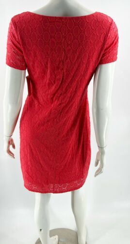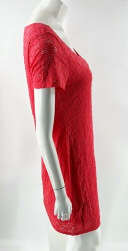 Isaac Mizrahi Lace Dress Size L Coral Pink Lined Short Sleeve Stretch Womens NEW