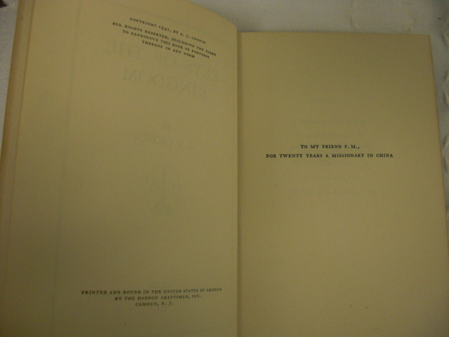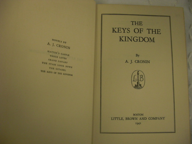 The Keys of the Kingdom: written by A. J. Cronin, C. 1941, First edition by Litt