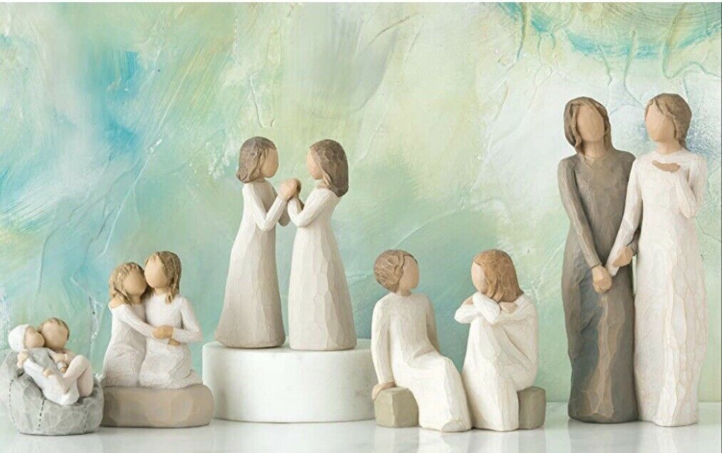 Willow Tree sculptural art forms beautifully express love, closeness, healing, courage, hopeโฆ all the emotions of a life well lived. Artist Susan Lordi hand carves the original of each figure from her studio in Kansas City Missouri. Pieces are cast from her original carvings, and individually painted by hand. Expression is revealed through gestures onlyโฆ a tilt of the head, placement of the hands, a turn of the body. The simplicity of form and absence of facial features signify Willow Tree. It is Susanโs hope that these pieces be meaningful to both giver and receiver.