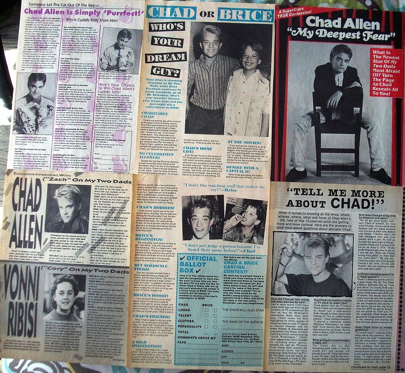 CHAD ALLEN ~ Twenty (20) B&W Vintage ARTICLES from 1987-1990 ~ Batch 2 Clippings