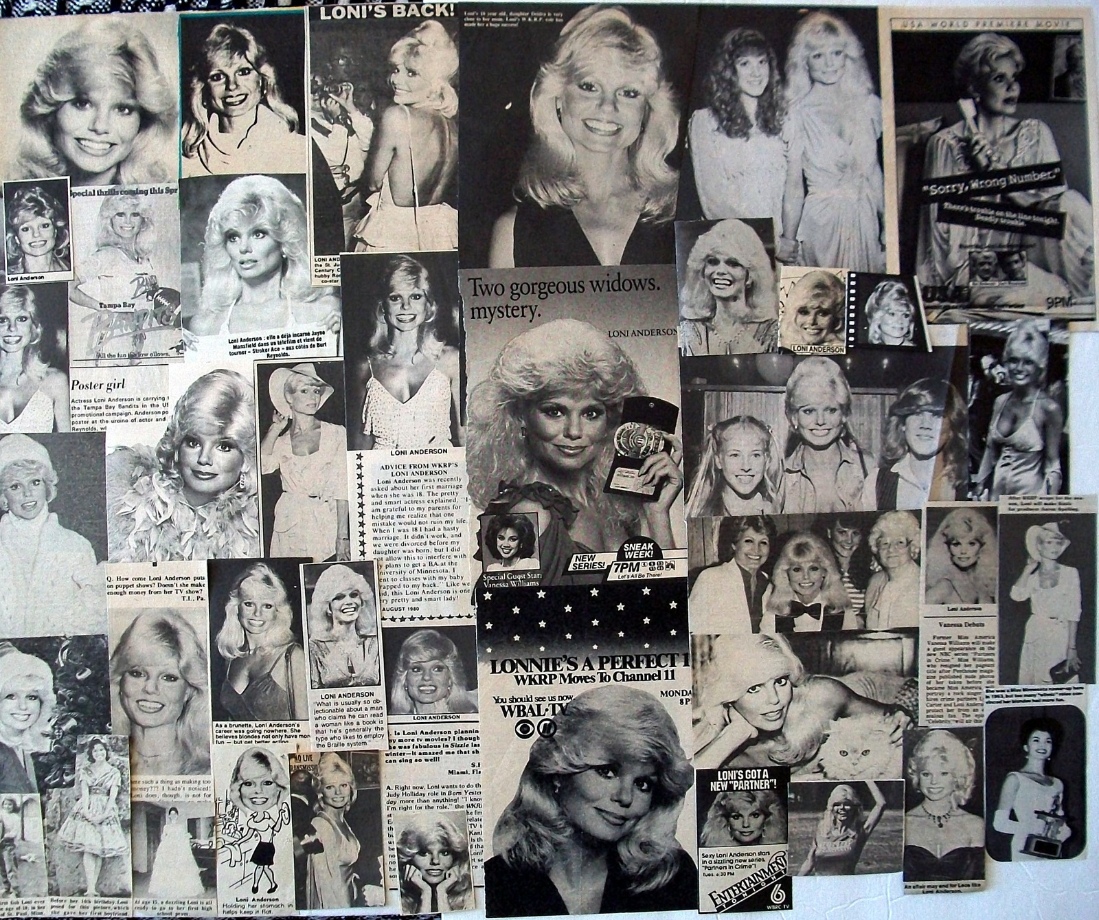 LONI ANDERSON ~ One Hundred Thirty-Six (136) B&W Vintage CLIPPINGS frm 1979-1989