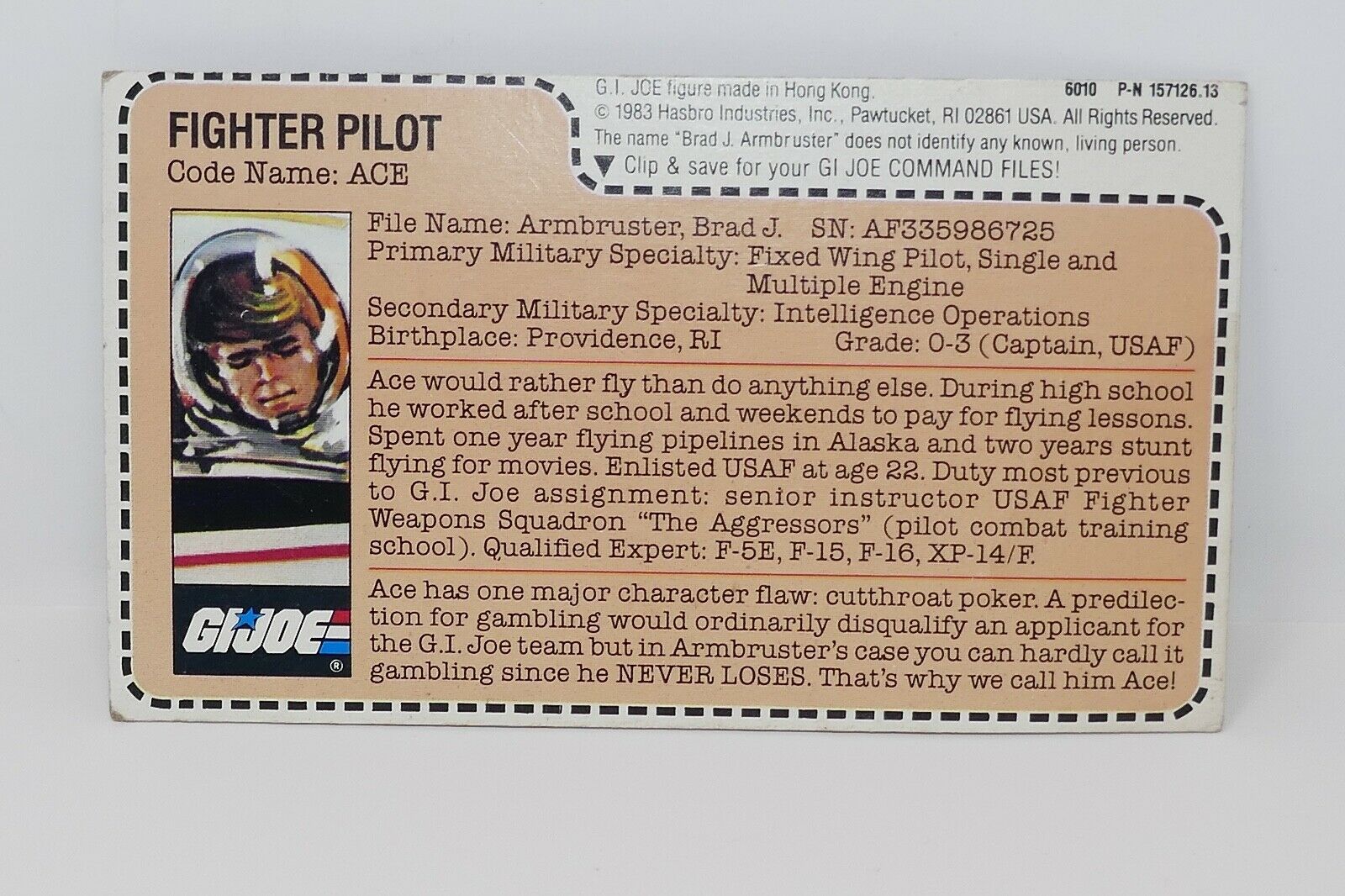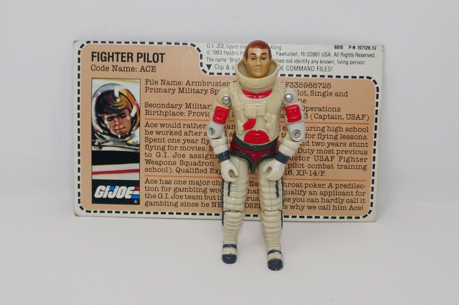 Hasbro 1983 GI Joe Ace v1 Fighter Pilot Loose Action Figure with File Card