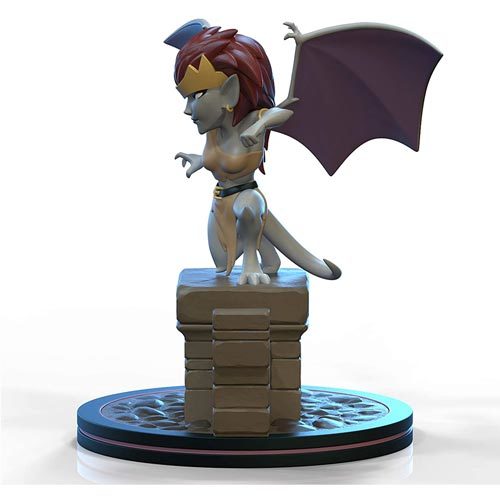 Inspired by the classic Disney animated television series Gargoyles, the Demona Q-Fig captures the fury and menace of the she-demon as she prepares to leap from her perch and strike with razor sharp claws and a vicious prehensile tail. The worthy adversary of Goliath and the Manhattan Clan is shown with her vibrant red hair and the pale blue skin of her true form, and stands approximately 5 inches tall on a themed base that resembles the gothic rooftop of the Eyrie Building.