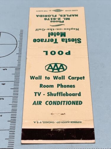 Front Strike Matchbook Cover Siesta Terrace Motel Naples-on-theGulf Fla. gmg