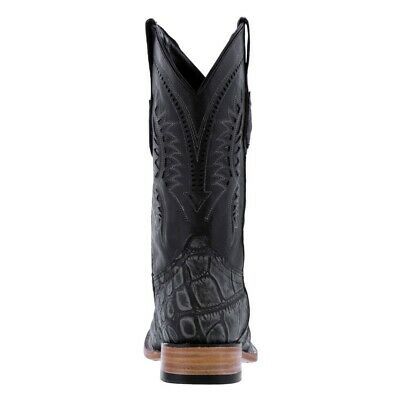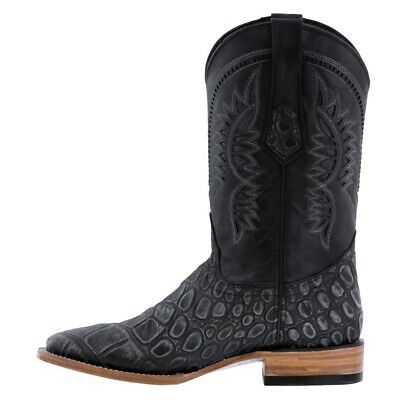 Mens Gray Leather Cowboy Boots Elephant Print Western Wear Square Toe Botas