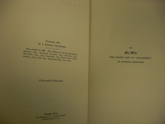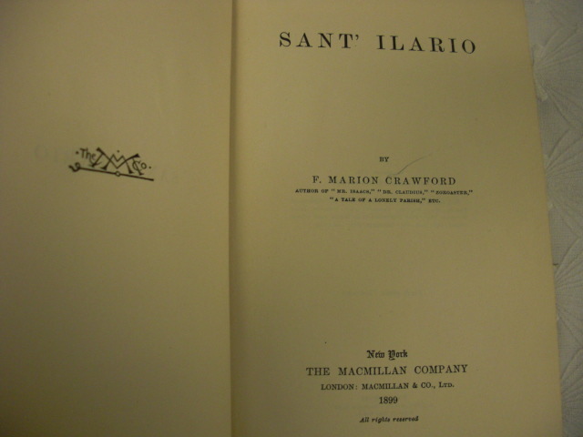 . Sant’ Ilario: written by F. Marion Crawford, C. 1988, printed 1899 by The Mac