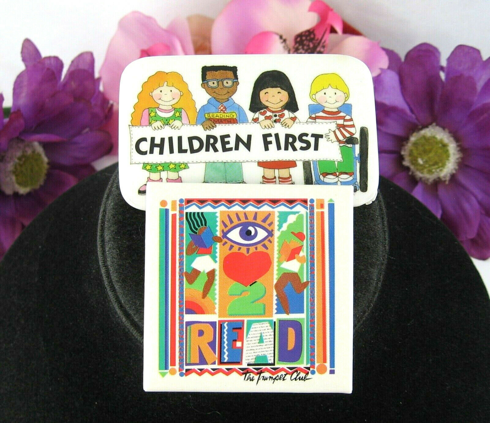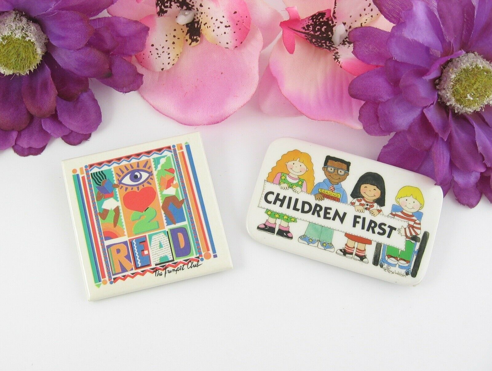 CHILDREN FIRST And I LOVE TO READ 2 School Teacher Pins Vintage Brooch 1991