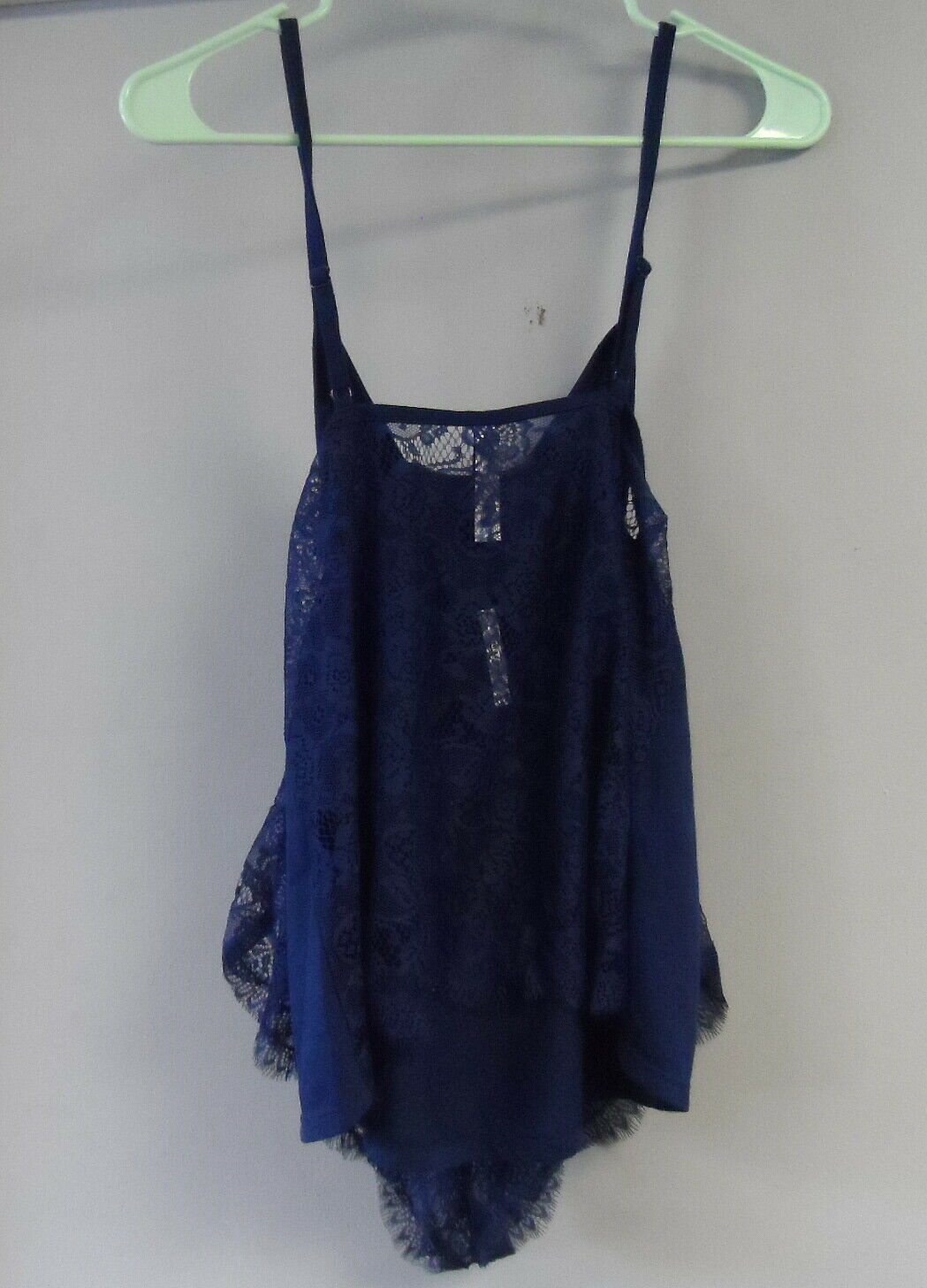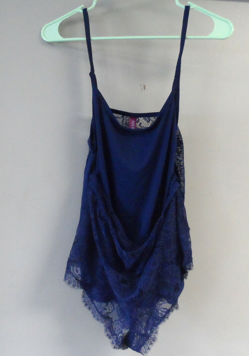 Adore Me Women's Lace Trim Solid Pattern Risque Gown w/ Panty 07065 Blue Small