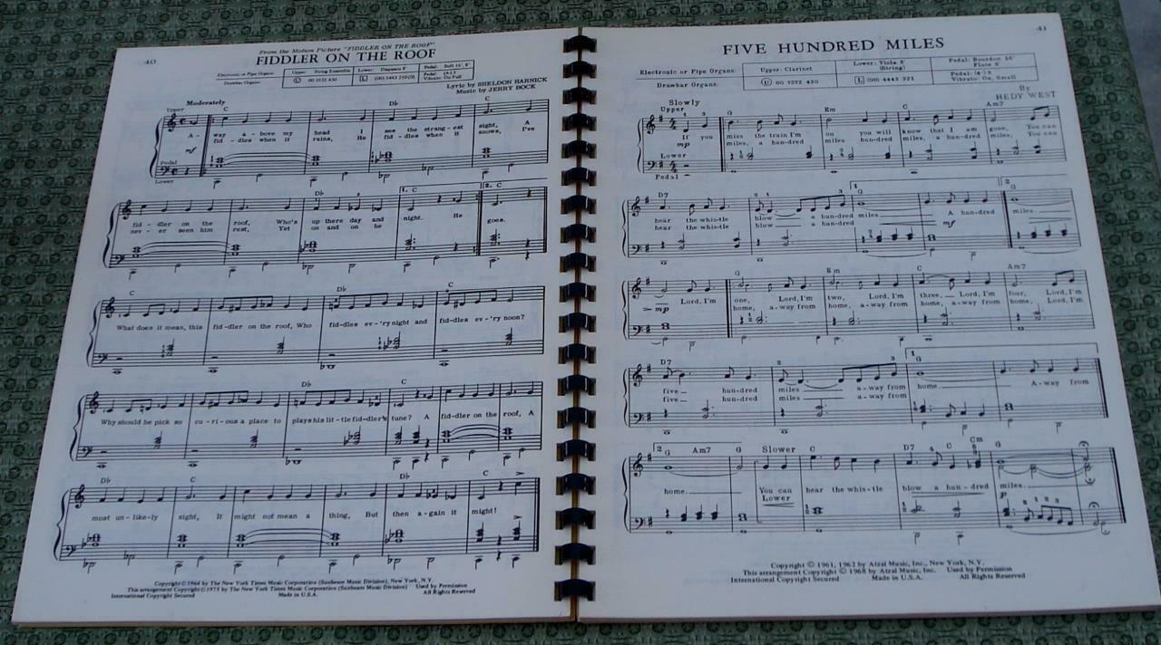 You are bidding on this great old music book, Gold 100, Easy organ arrangements by John Brimhall. It has no copyright date on it, and was published by the Lewis Music Publishing Company, Inc. It is in good condition, for its age. There are also some scuffs and light stains the music as well. The music is 120 pages long. There are many tears along the edges, and there are pencil and pen notations throughout the music. There are also many creases along the edges and corners. This is a great, old music book in need of some TLC, and still a great find.