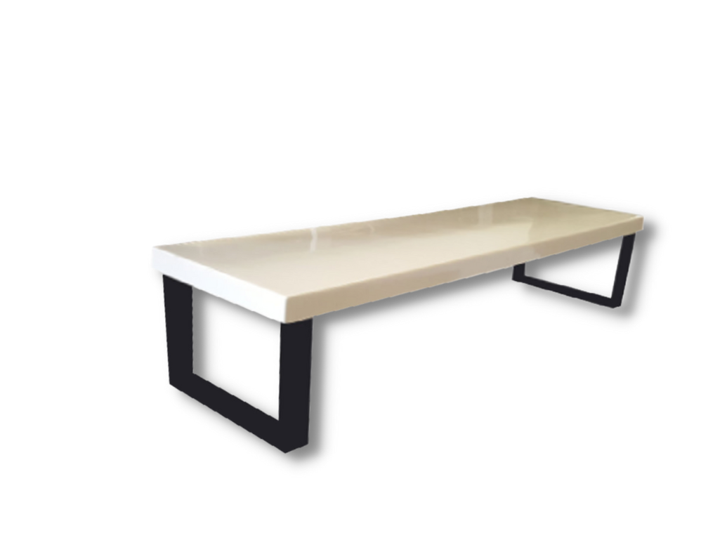 Laundromat fiberglass flat bench is available in all colors, units are bolt down ready. All metal parts are painted black. Seat to floor on contoured benches 17". Seat to floor on park and flat benches 19". FLBCH 10 size is 120" L x 20" W x 37" H and 92 lbs. weight.