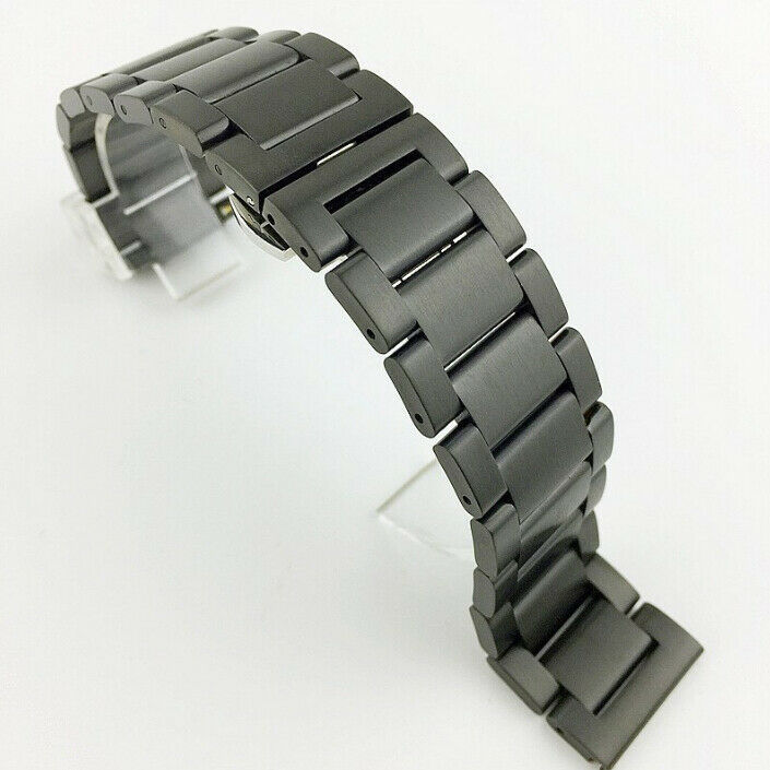 21mm Black Stainless Steel Metal Watch Bracelet Watchband + Tool & Spring Bars