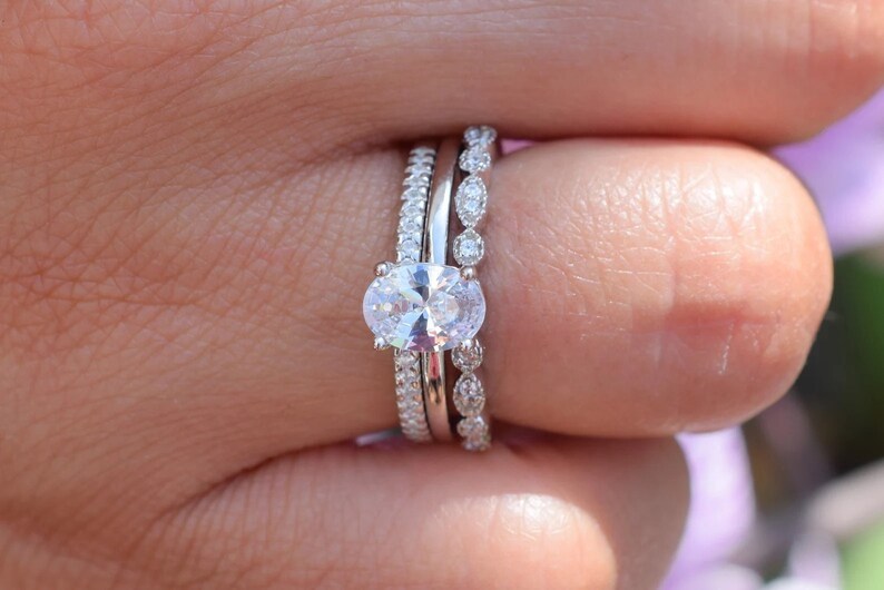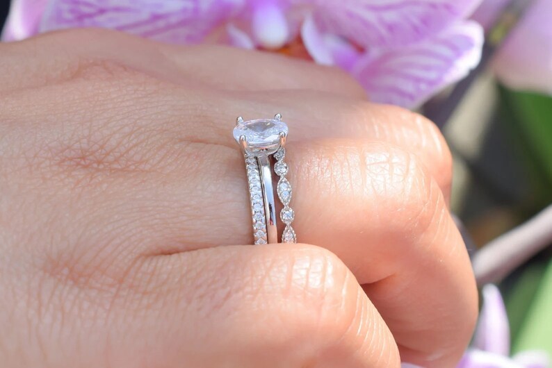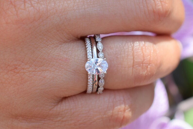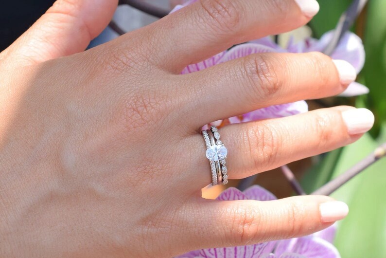 1.2ct Art Deco Oval Ring Set, Engagement Ring Set,Wedding Ring Set,Oval Ring