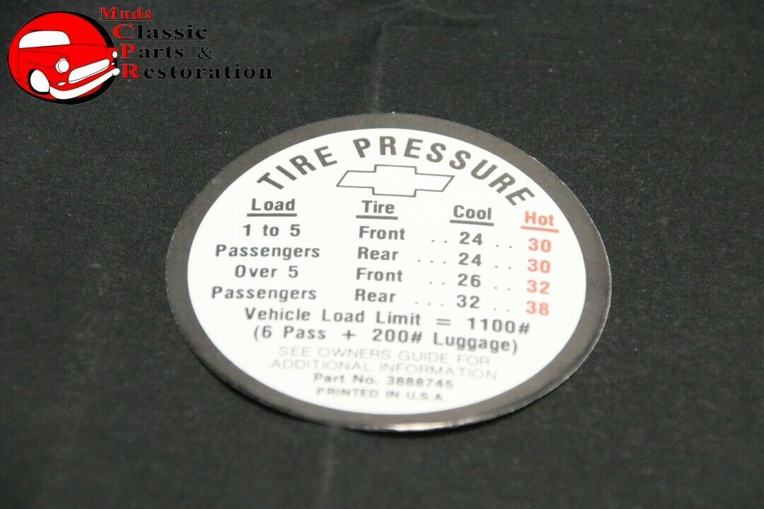 66 Impala/Full Size Chevy Tire Pressure Decal GM #3888753