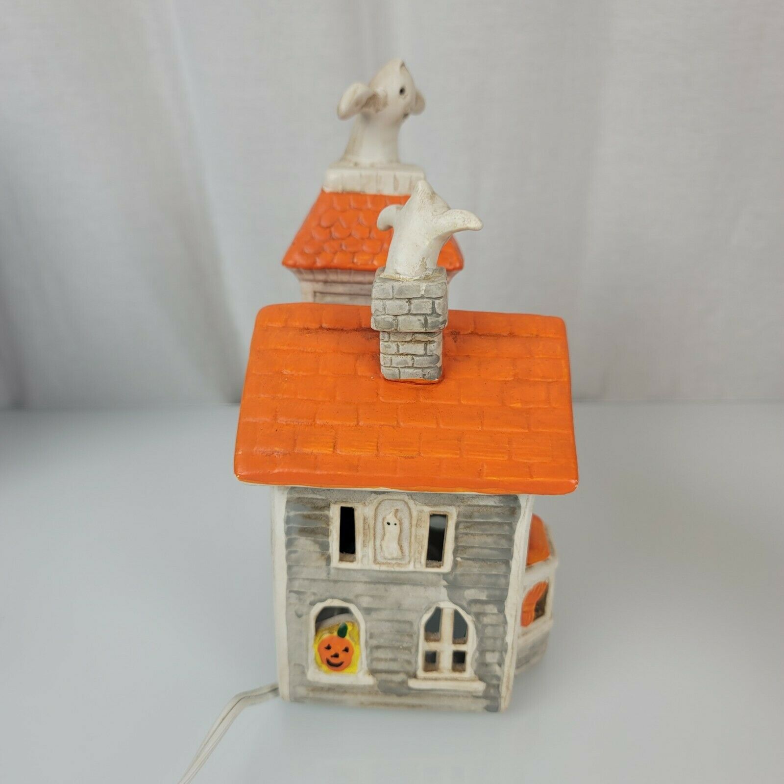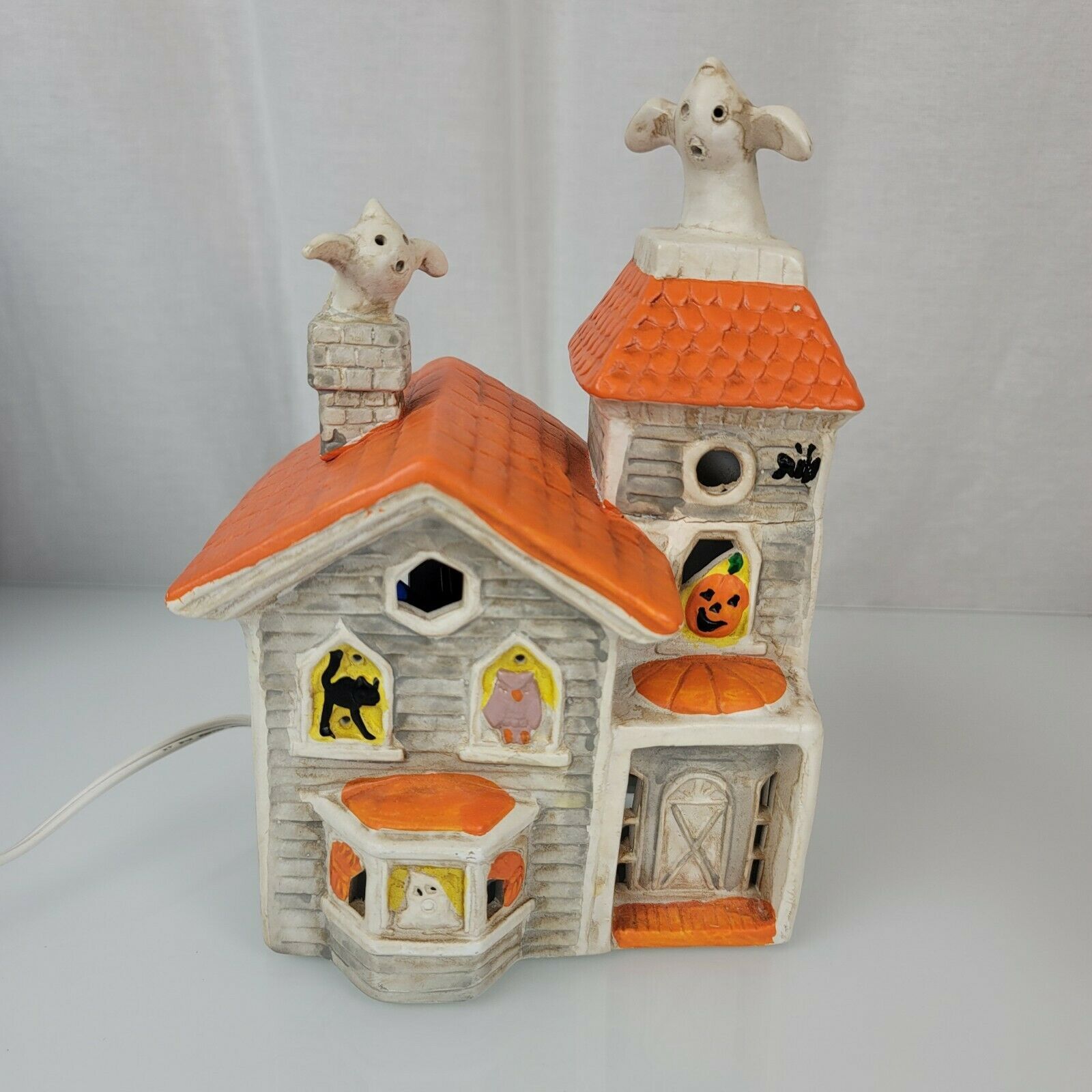 Vintage Norcrest Light Up Ceramic Electric Haunted Halloween House Village