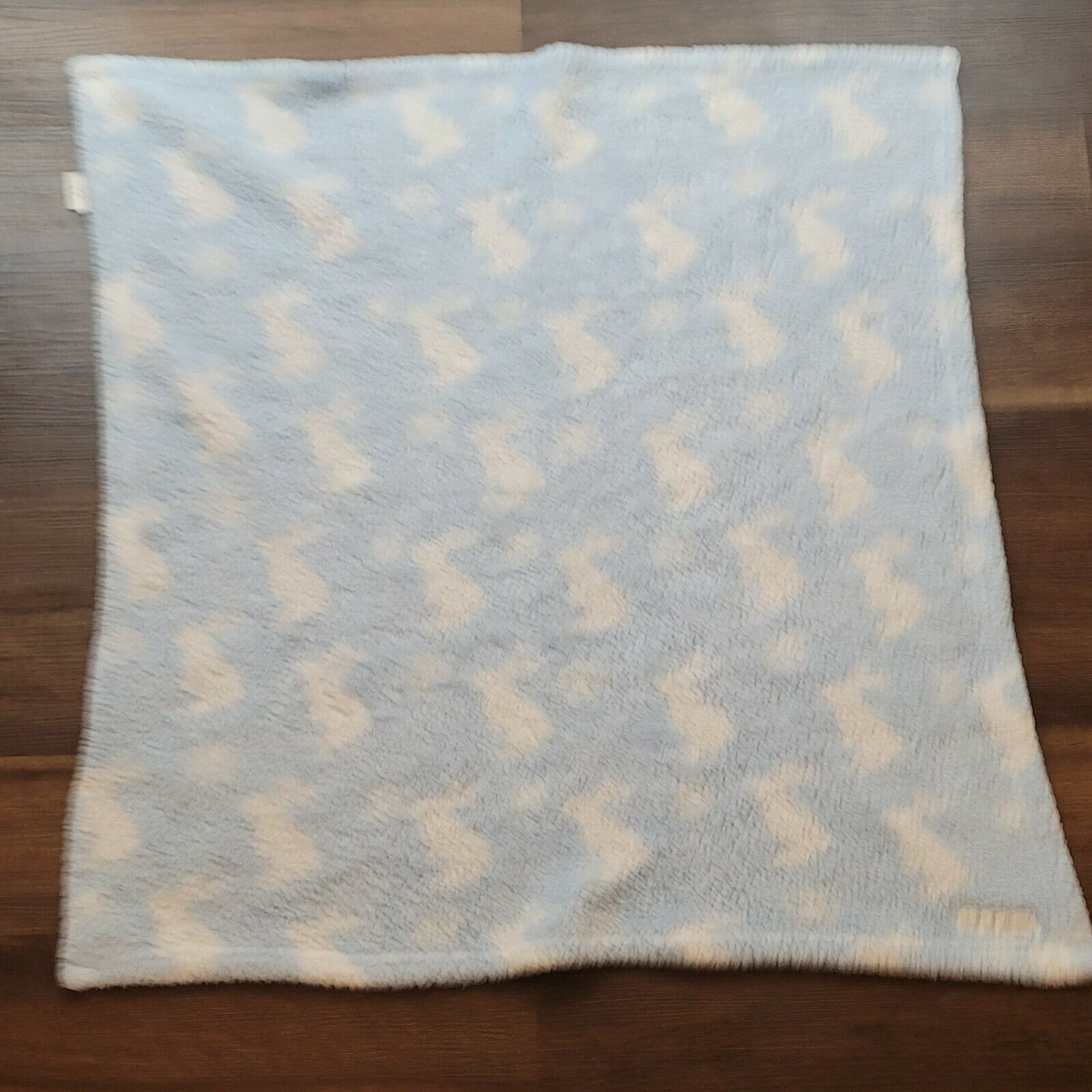 Blankets & Beyond Blue White Plush Fleece Baby Blanket Bunny Rabbit Dandelion
