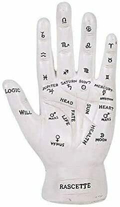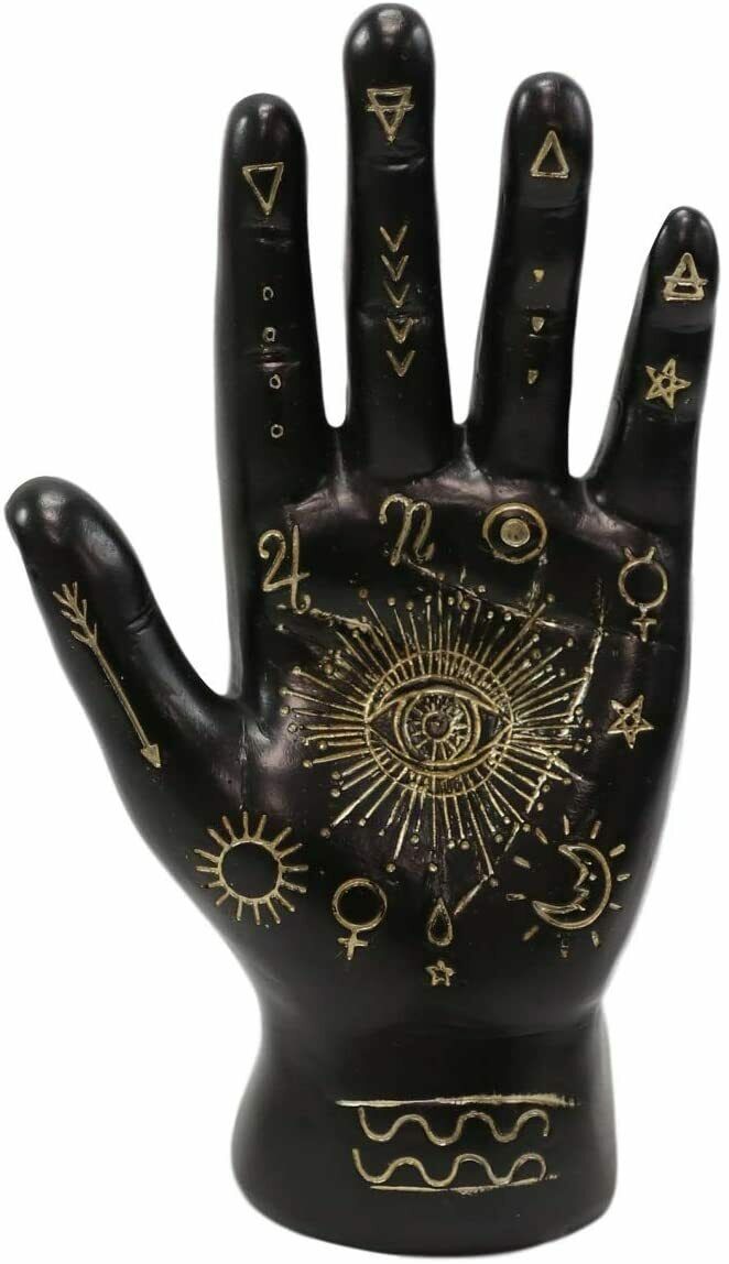 โข This Palmistry Hand Palm Fortune Telling Statue is made of designer composite resin, hand painted and polished individually. Color Tone may vary slightly from pictures. The Hand Palm sculpture is perfect as a decor or as jewelry holder.