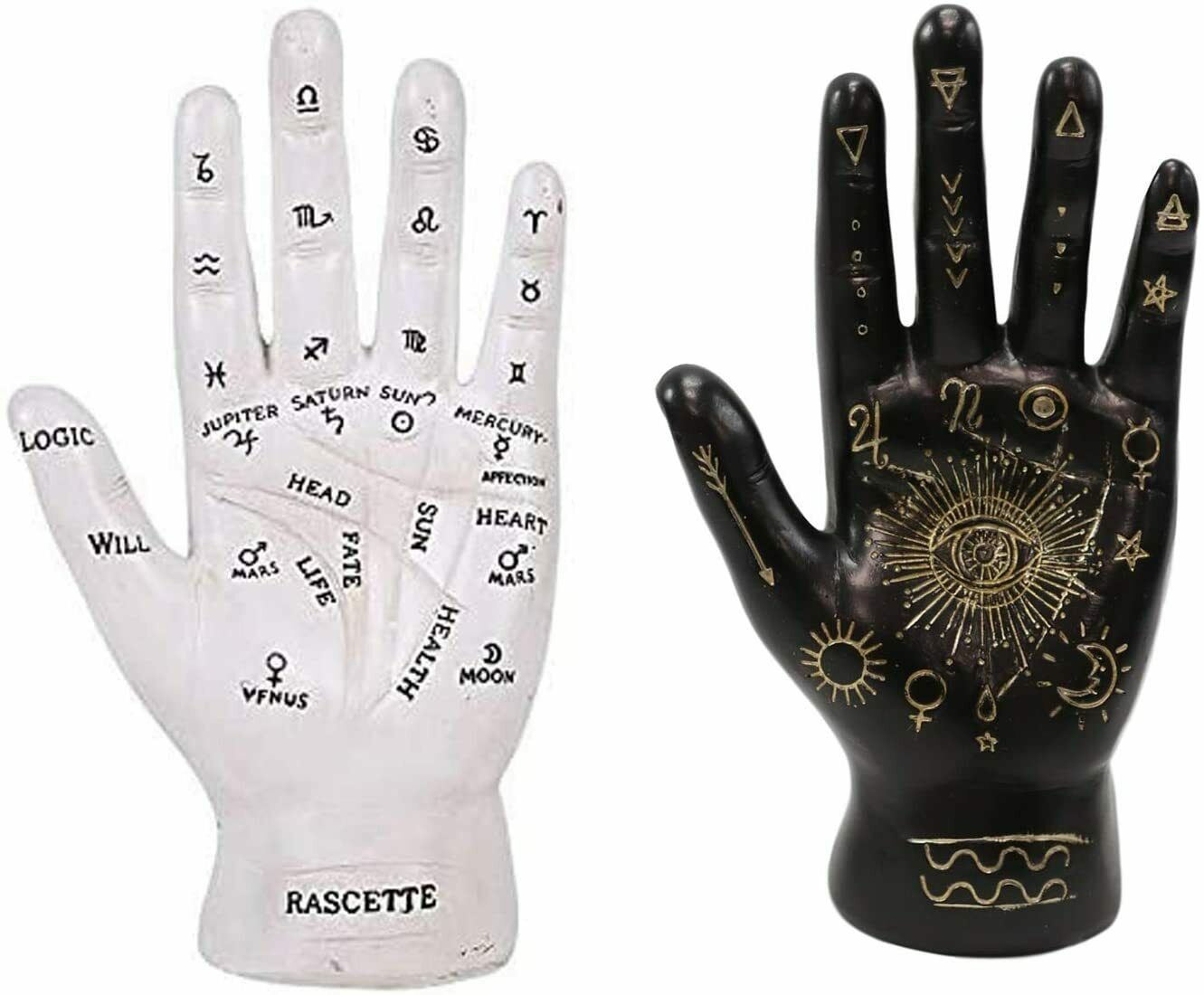 Ebros Psychic Fortune Teller Palmistry Hand Palm Figurine (Black & White Set)