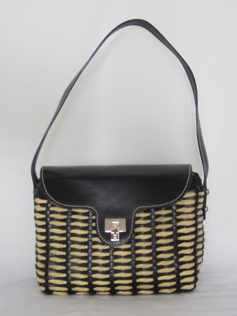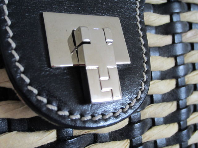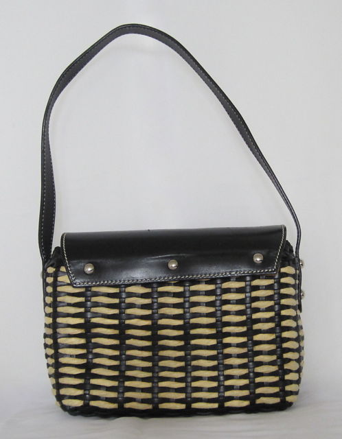 $795 AUTH Lambertson Truex woven leather and plant fiber shoulder bag