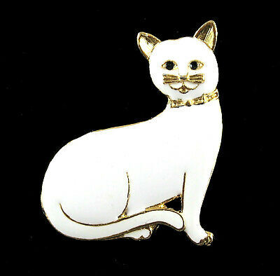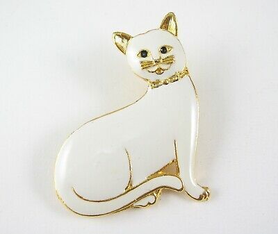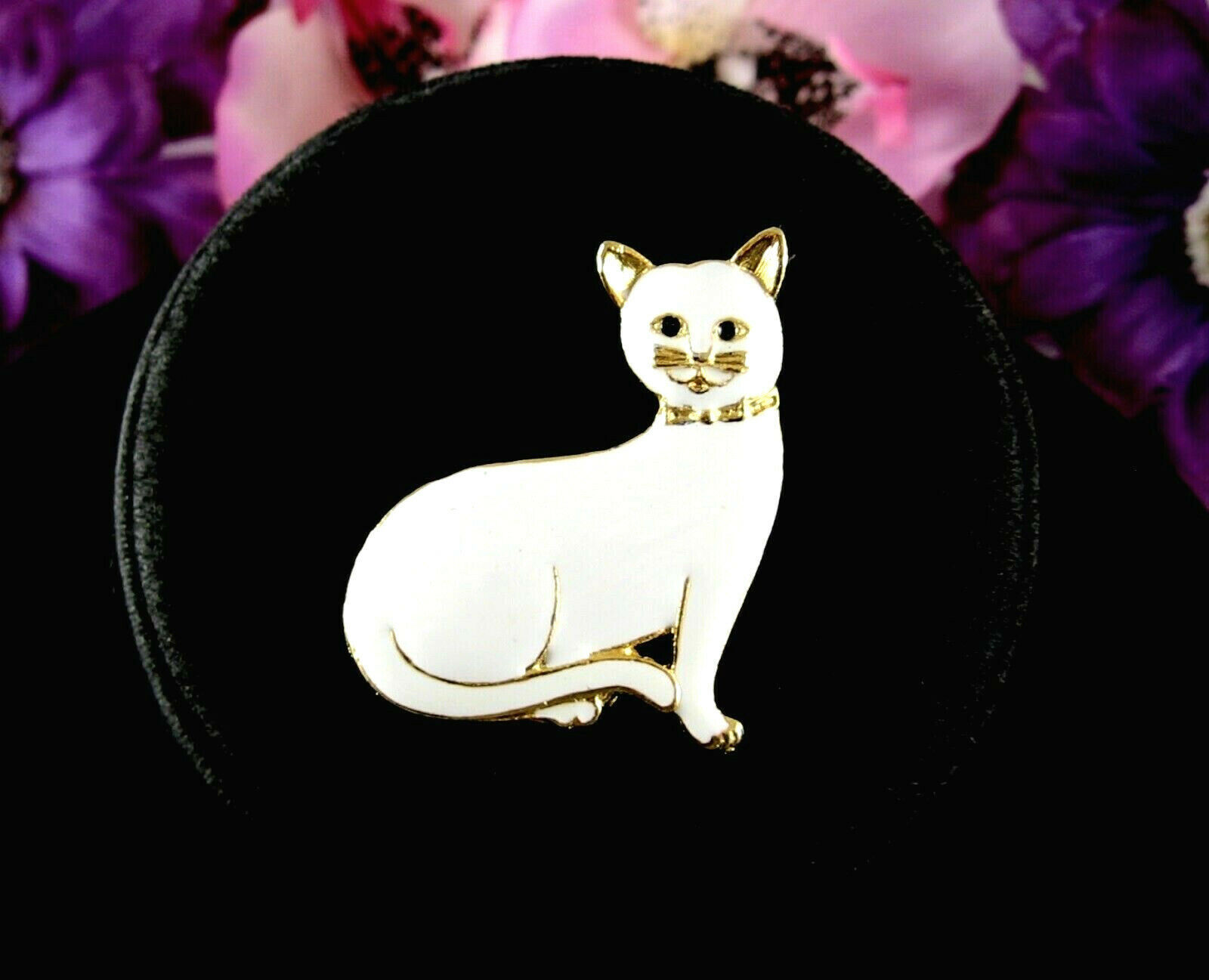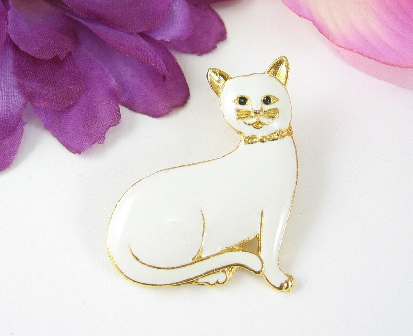 White Enamel Kitty Cat Pin Vintage Brooch and 49 similar items