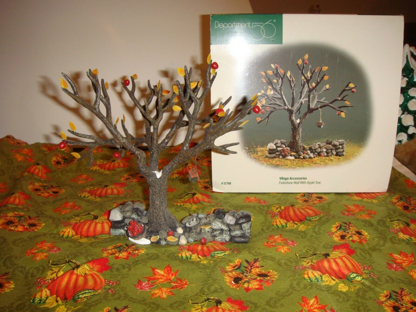 Dept. 56 Village Accessories Village Fieldstone Wall W/Apple Tree, New.