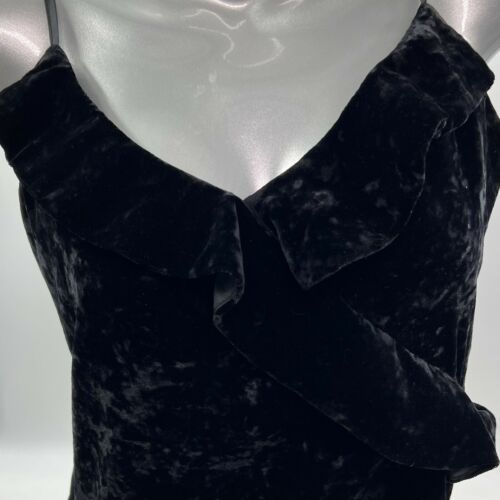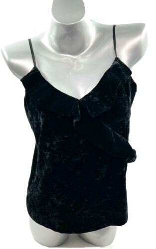 J Crew Factory Tank Top Sz S Black Ruffle Velour Adjustable Spaghetti Strap Cami