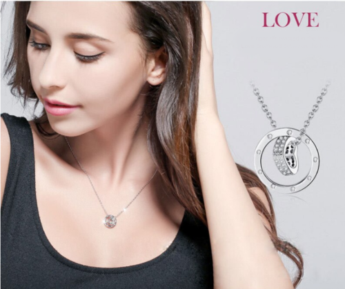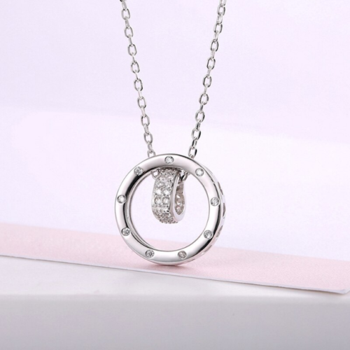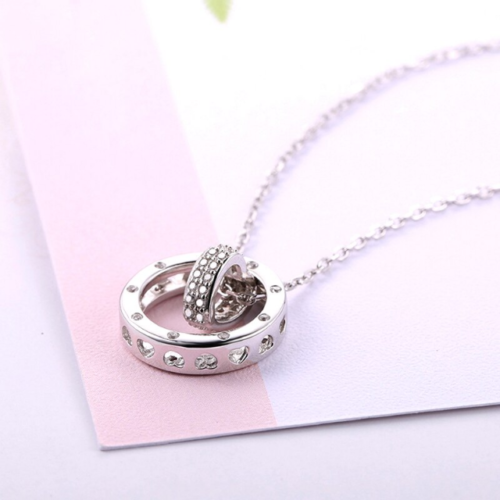 Exquisite 925 Sterling Silver Geometric Interlock Zircon Heart Pendant Necklace