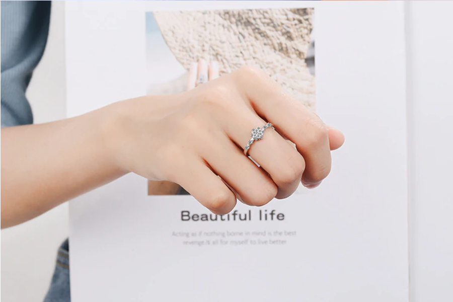 925 Sterling Silver Star Crystal Zirconia Adjustable Ring (Size 6-9) FAST SHIP!