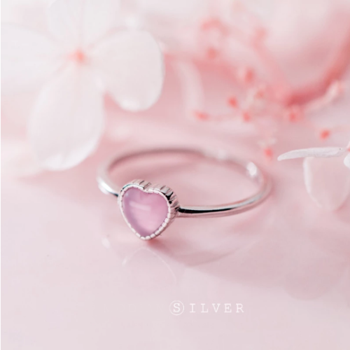925 Sterling Silver Romantic Pink Opal Heart Adjustable Ring - FAST SHIPPING!!!