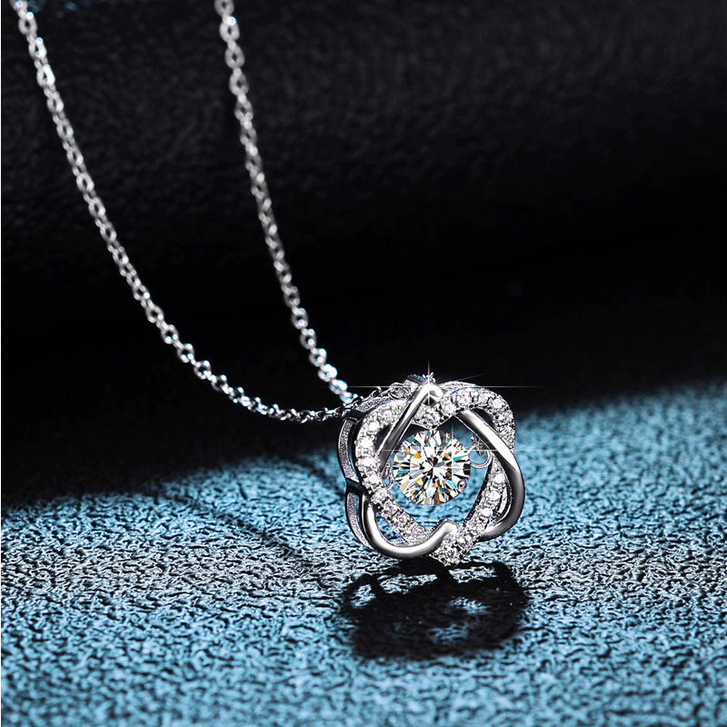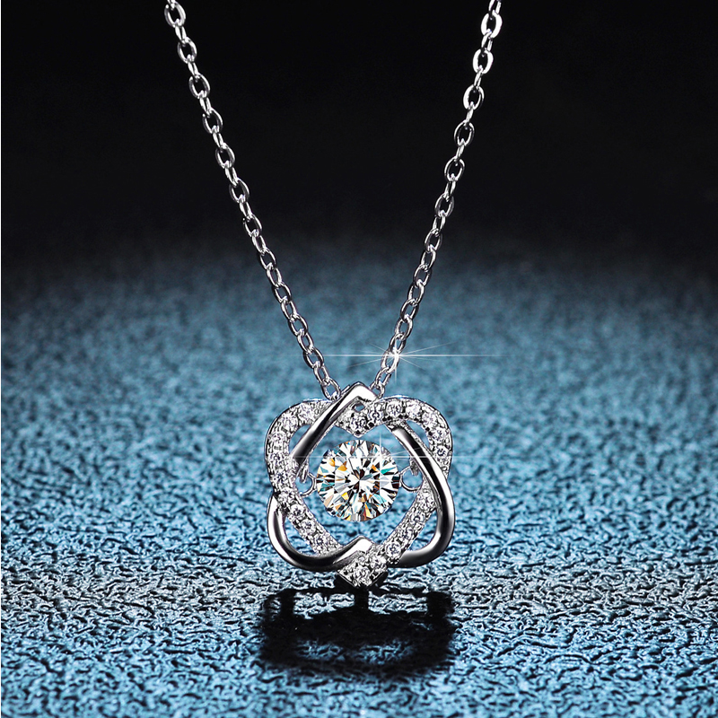 925 Sterling Silver Sparkling Moissanite Diamond Beating Heart Pendant Necklace