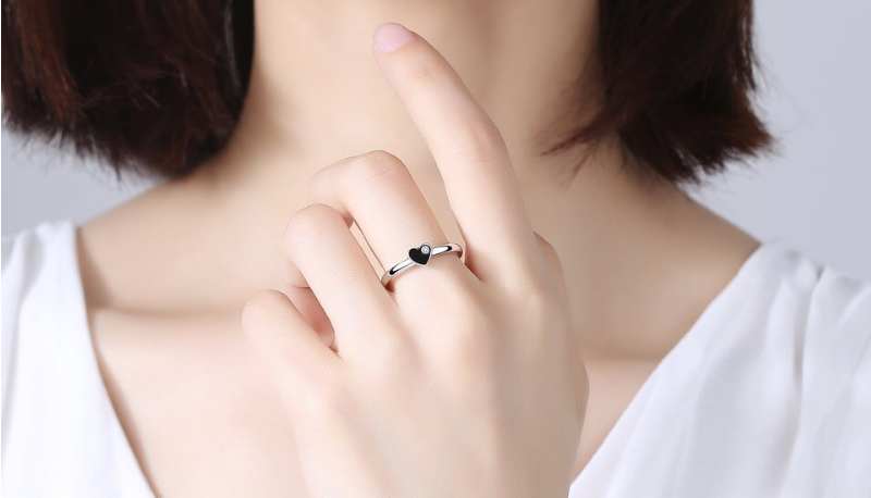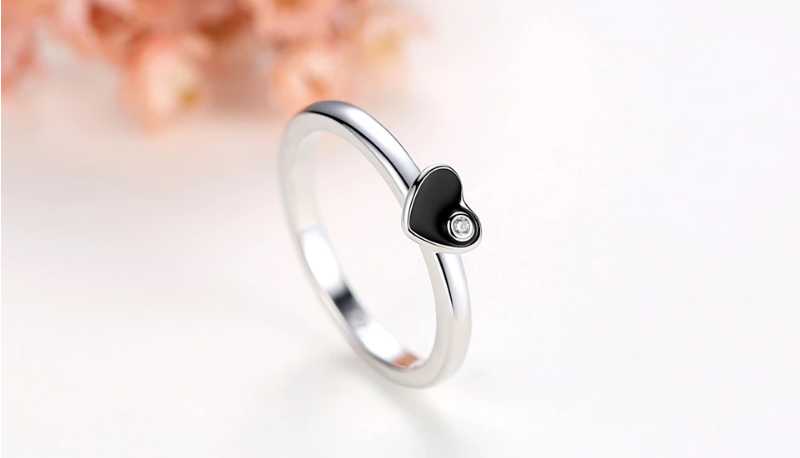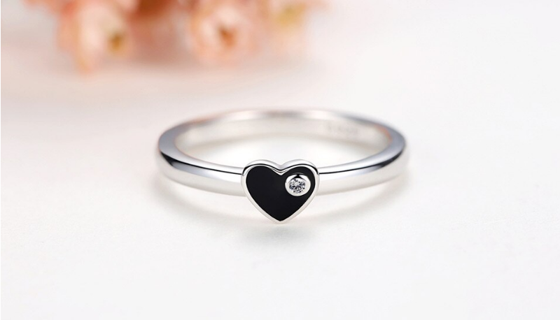 Exquisite 925 Sterling Silver Black Enamel Heart Zircon Ring - FAST SHIPPING!!!