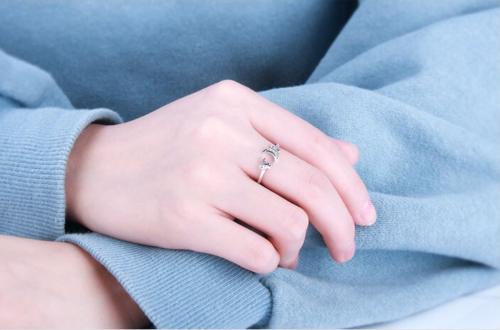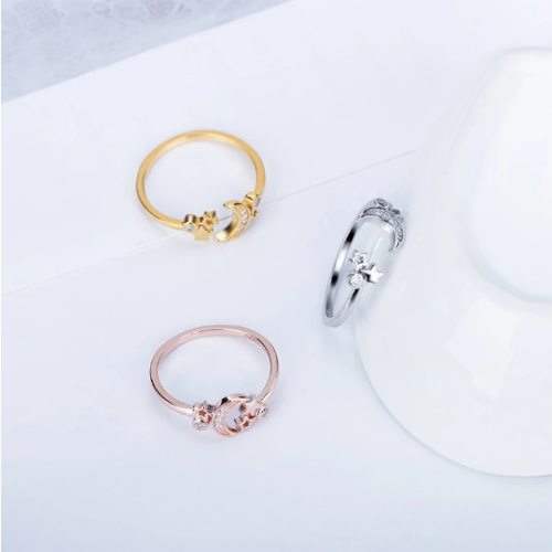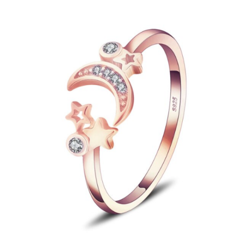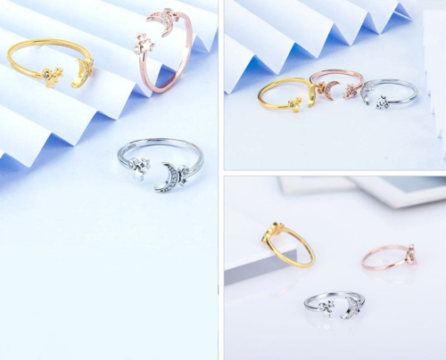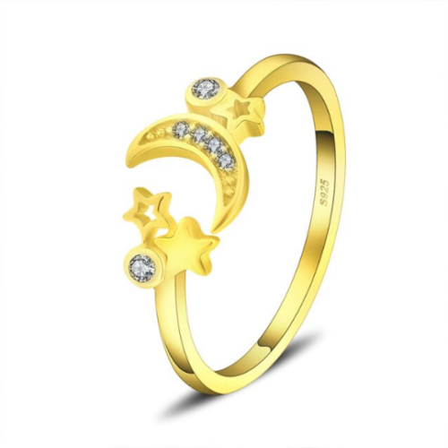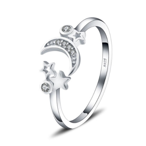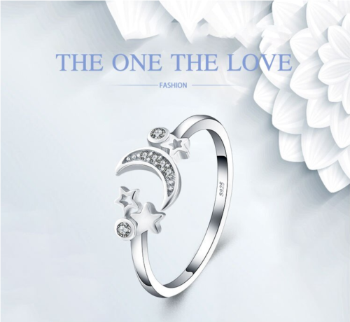Genuine 925 Sterling Silver Zircon Moon & Stars Adjustable Ring - FAST SHIPPING!