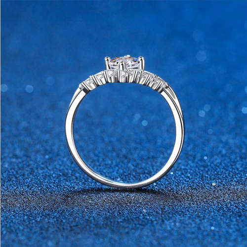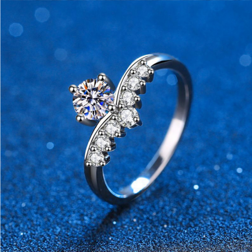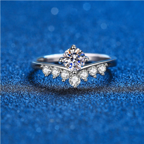 Certified 925 Sterling Silver Platinum Plated Princess Crown Moissanite Ring